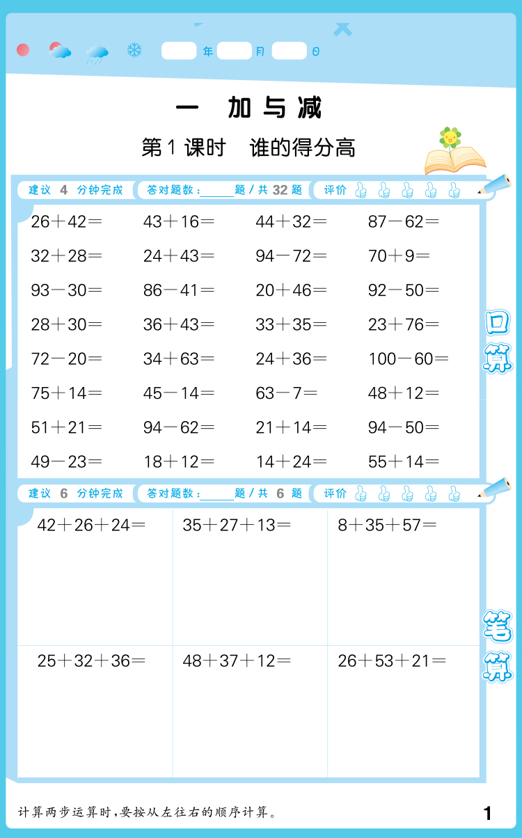 2023秋 53小学口算大通关 二年级上册数学 北师大版