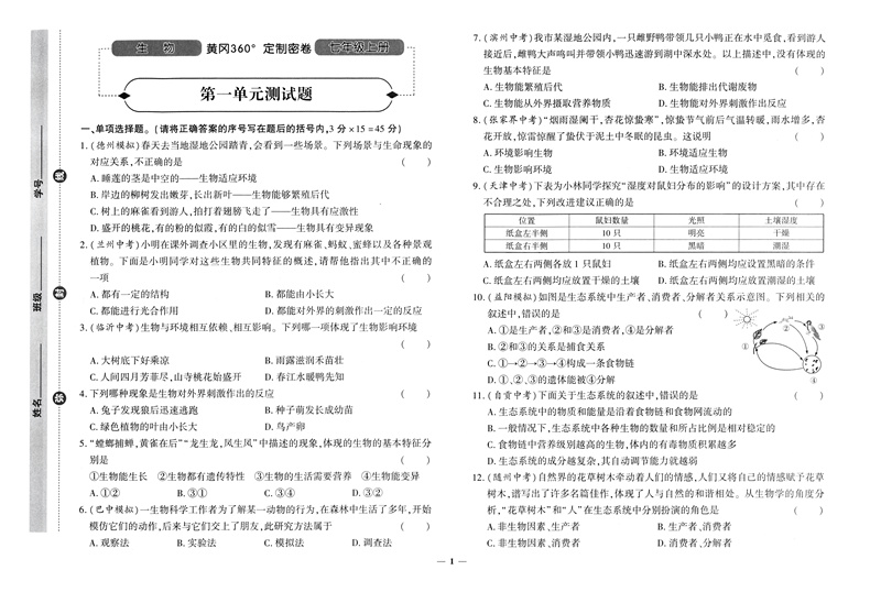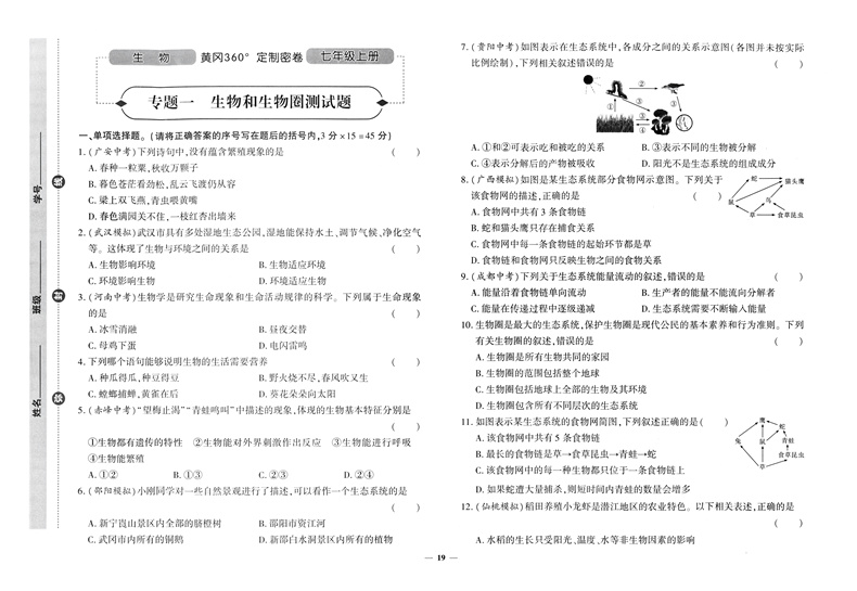 首页> 初中教辅> 七年级> 生物> 2023版黄冈360定制密卷七年级上册生物