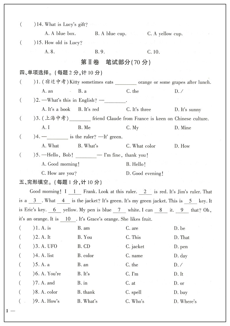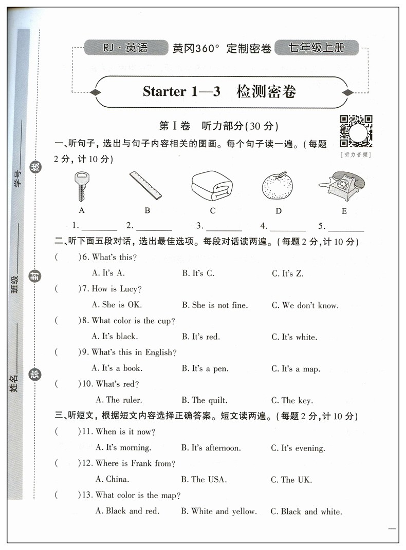 首页> 初中教辅> 七年级> 英语> 2023版黄冈360定制密卷七年级上册英语