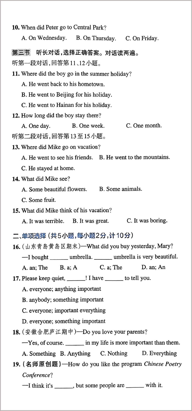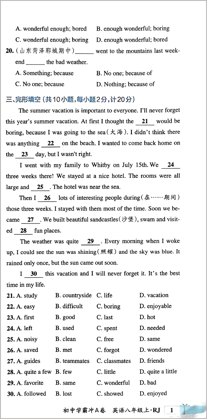 pass绿卡 初中学霸冲A卷 英语八年级上 人教版