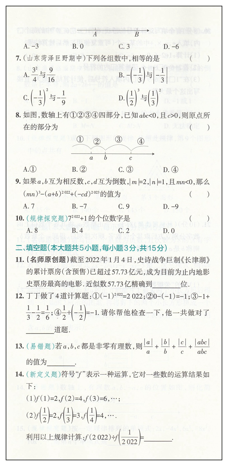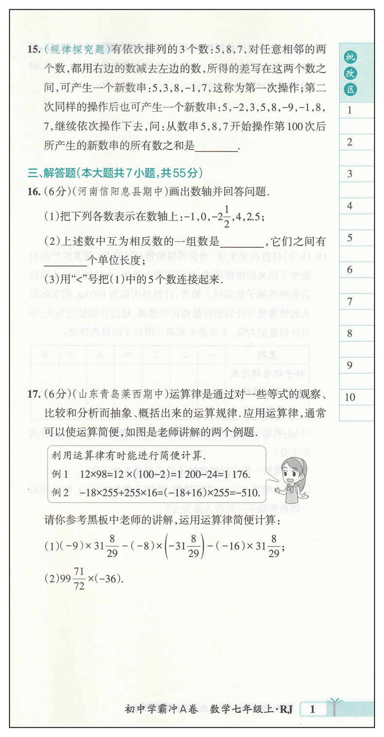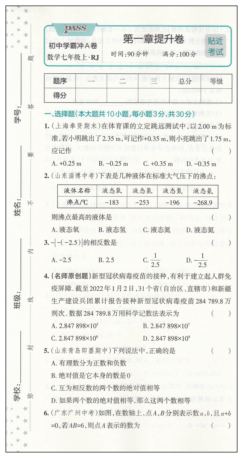 pass绿卡 初中学霸冲A卷 数学七年级上 人教版
