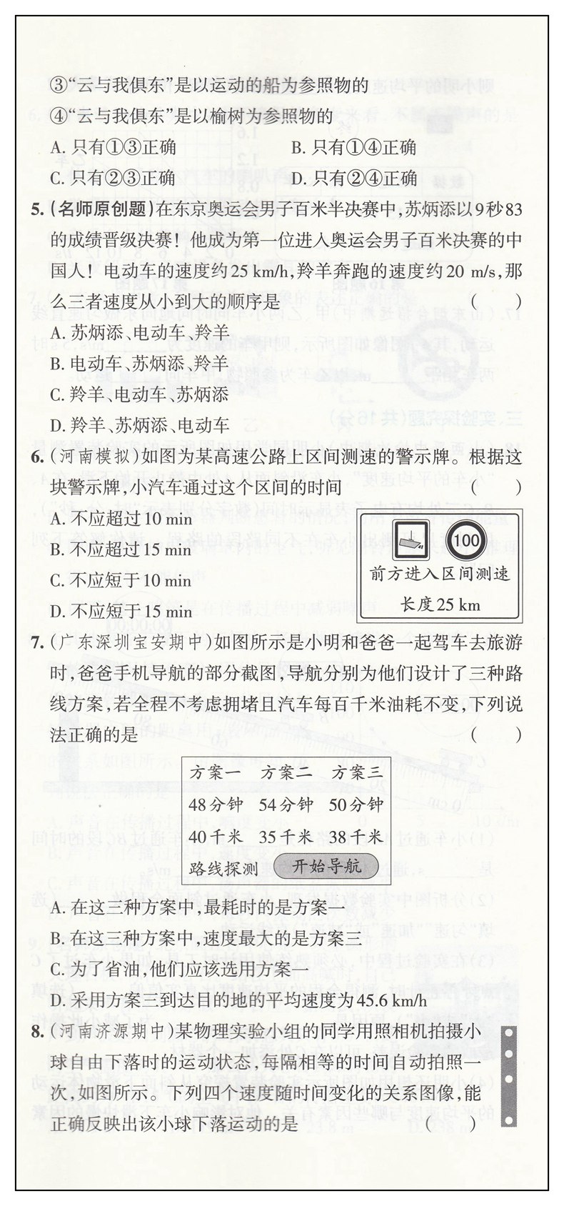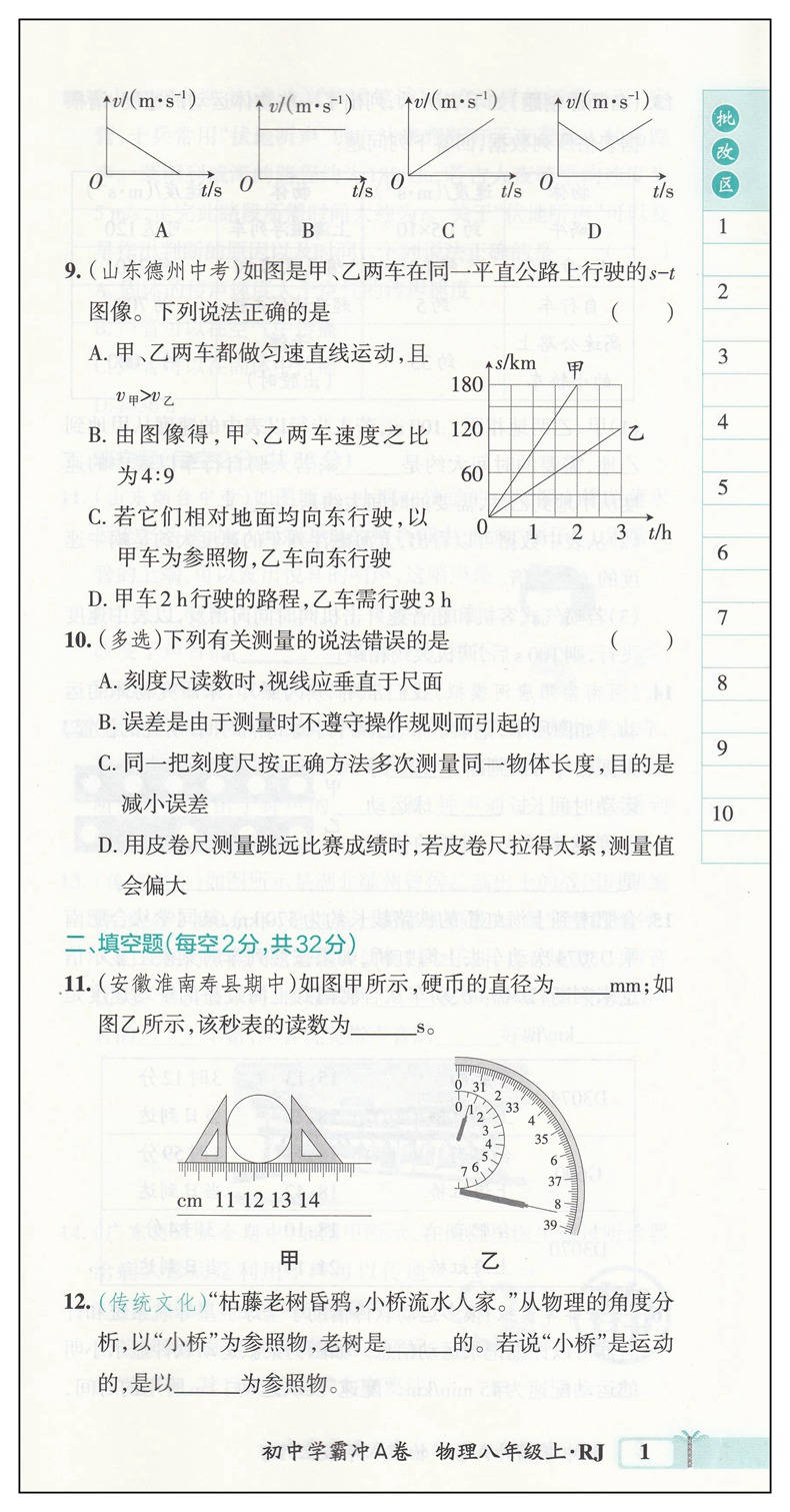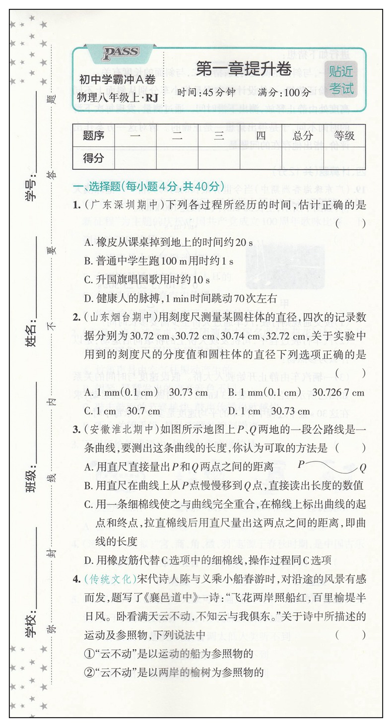 pass绿卡 初中学霸冲A卷 物理八年级上 人教版