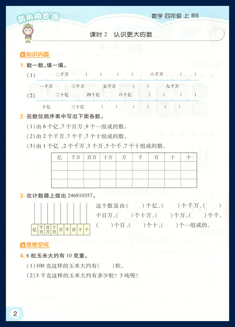 首页> 小学教辅> 四年级> 数学> 黄冈同步练一日一练四年级数学上册 BS版 万向思维