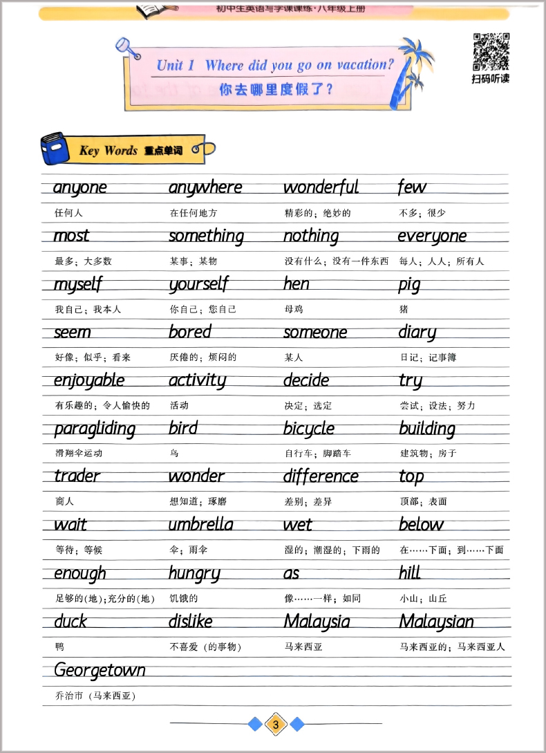 衡水体 初中生英语写字课课练 八年级上 人教版