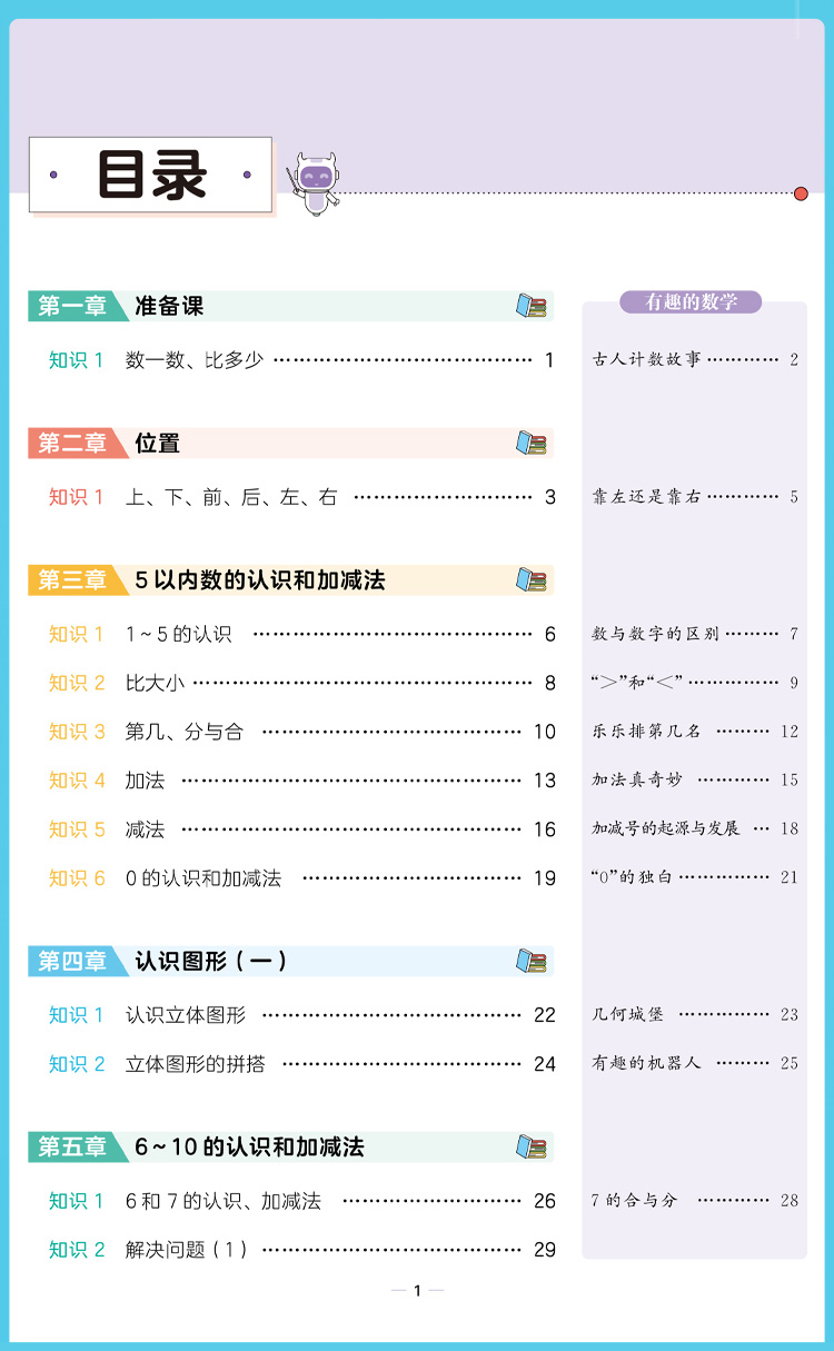 2023秋 53小学知识点集训 数学一年级上册