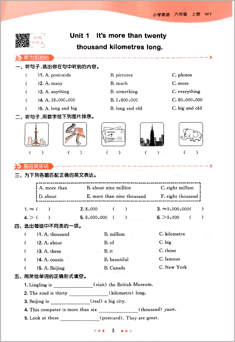 2023秋季 53天天练 小学英语六年级上册 WY