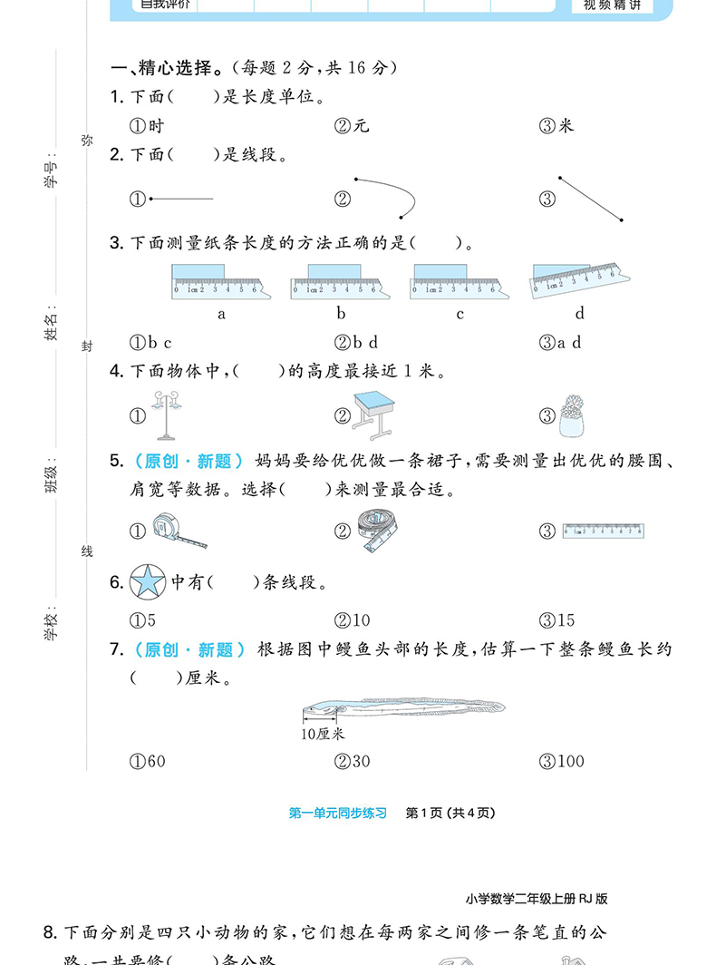 一本 同步培优新卷 小学数学二年级上册 RJ版