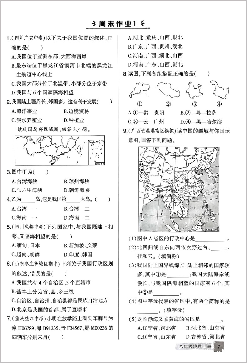 状元成才路 创优作业八年级上册 地理 人教版