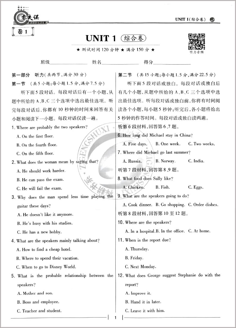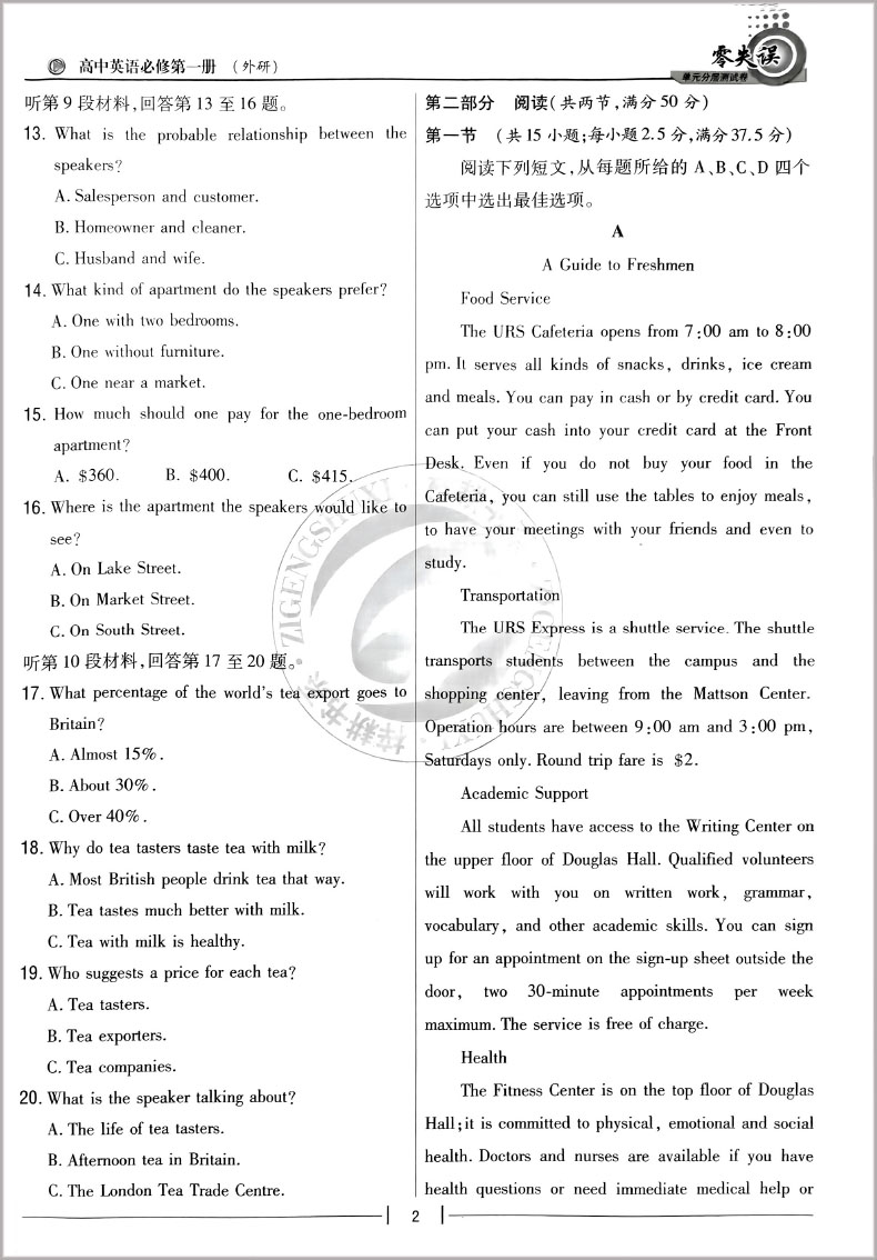 首页> 高中教辅> 高一年级> 英语> 零失误 单元分层测试卷 高中英语必修第一册 外研版