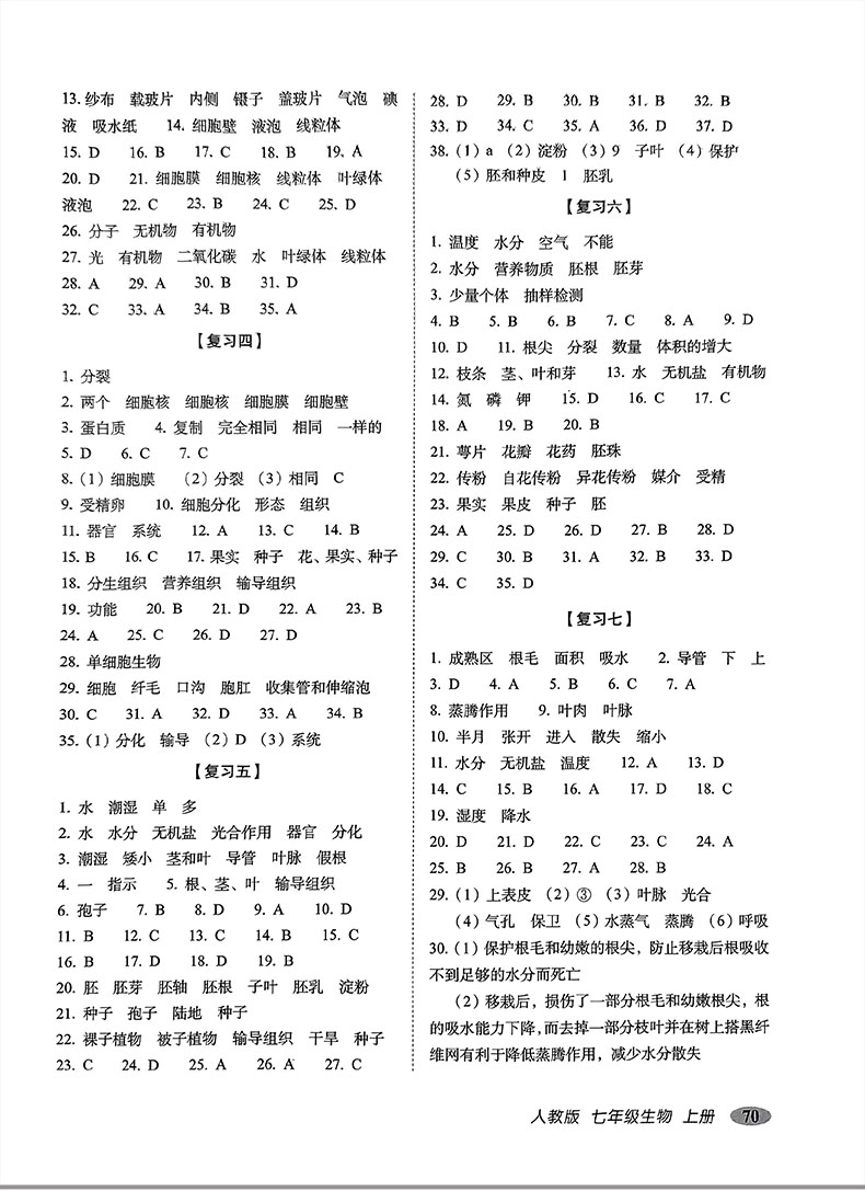 聚能闯关100分期末复习冲刺卷生物七年级上册23秋(人教版)