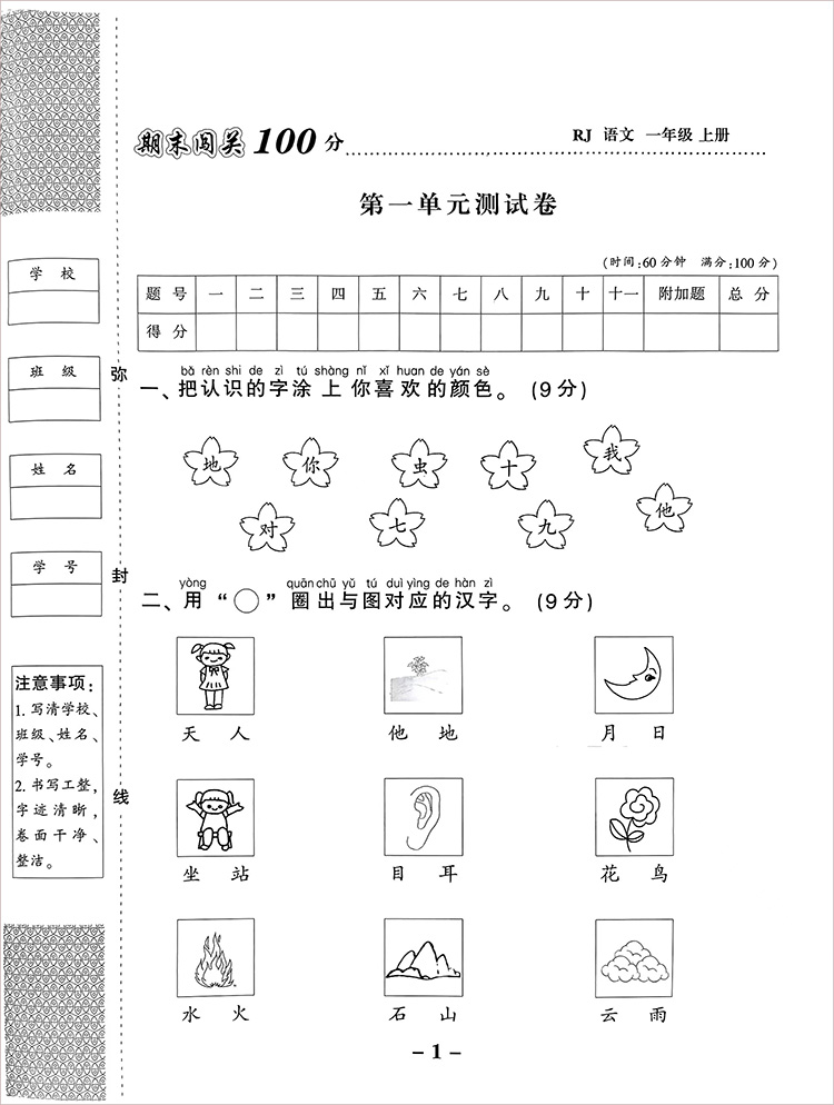 乐双图书 期末闯关100分一年级上册语文 人教版