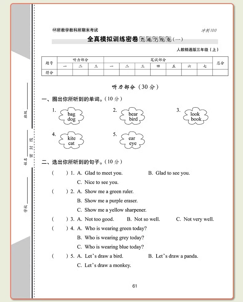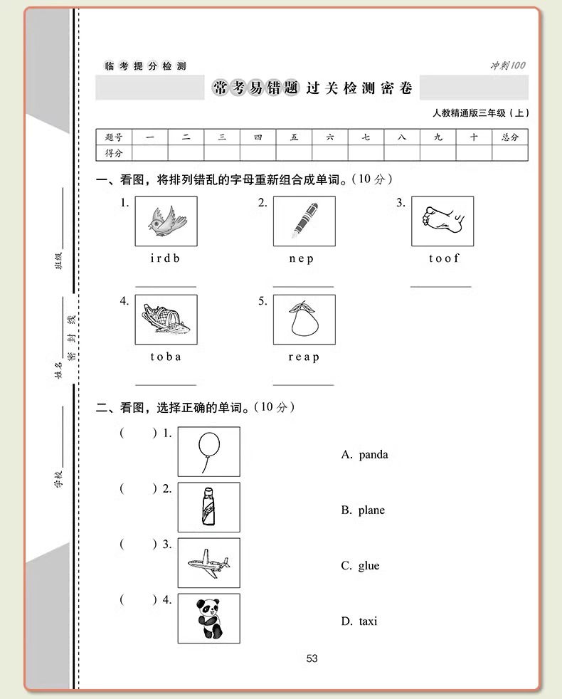 首页> 小学教辅> 三年级> 英语> 2023秋期末冲刺100分 英语三年级上册人教精通版
