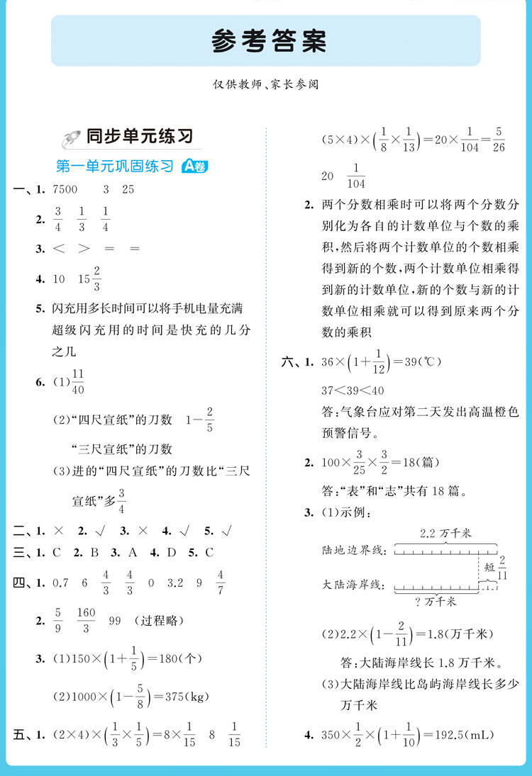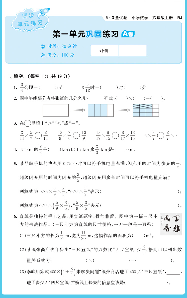 2023秋季 53全优卷 小学数学六年级上册 RJ版