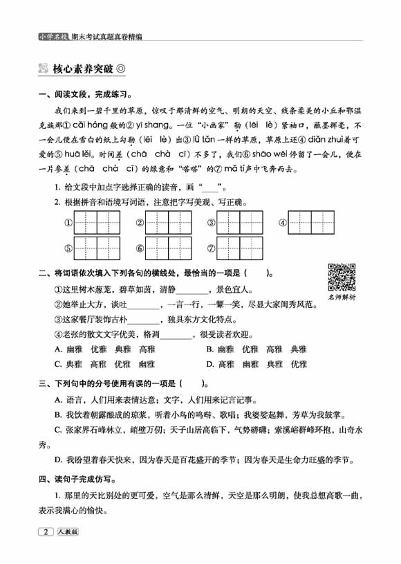首页> 小学教辅> 六年级> 语文> 小学名校期末考试真题真卷精编语文6年级上册(人教版)