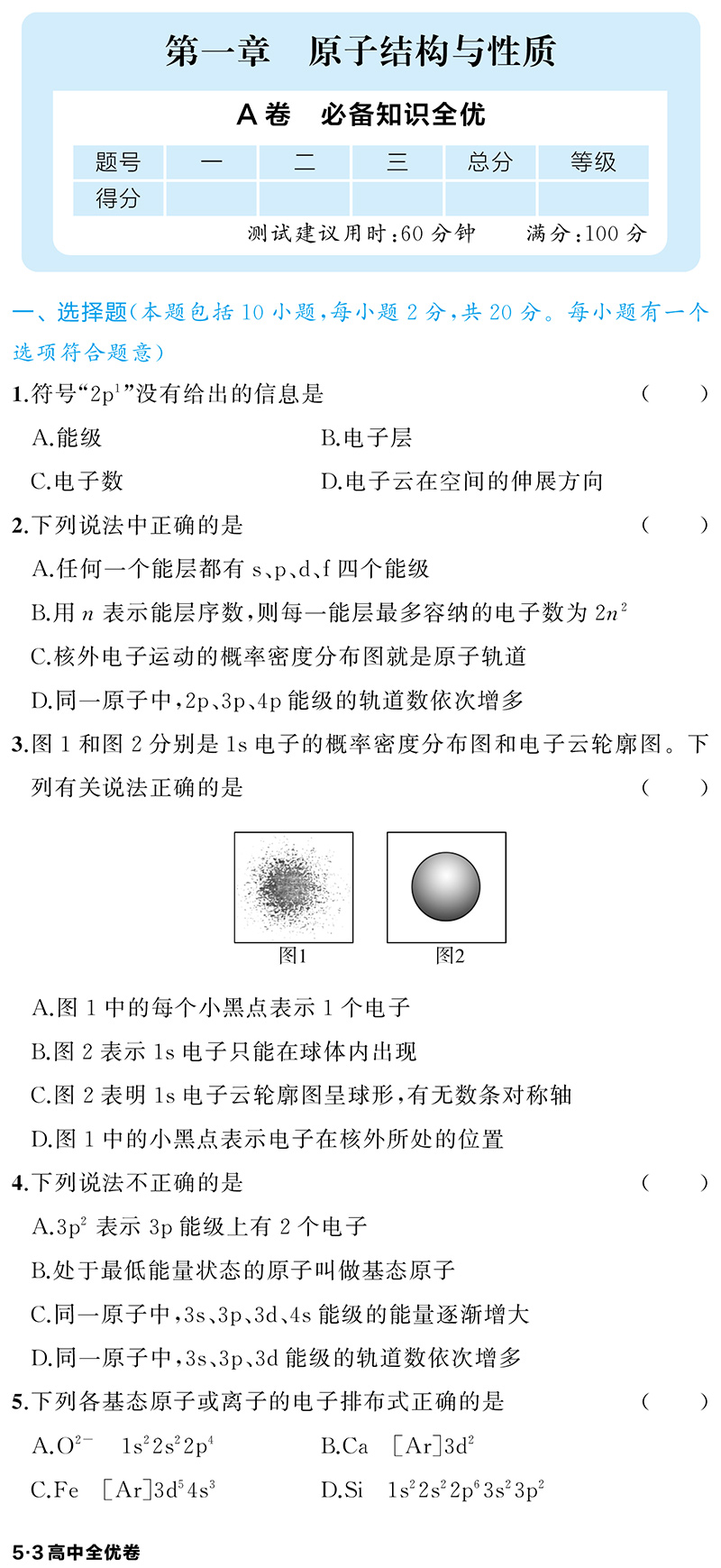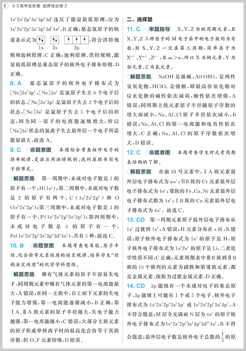 5.3全优卷 高中化学选修二、三 适用高二下