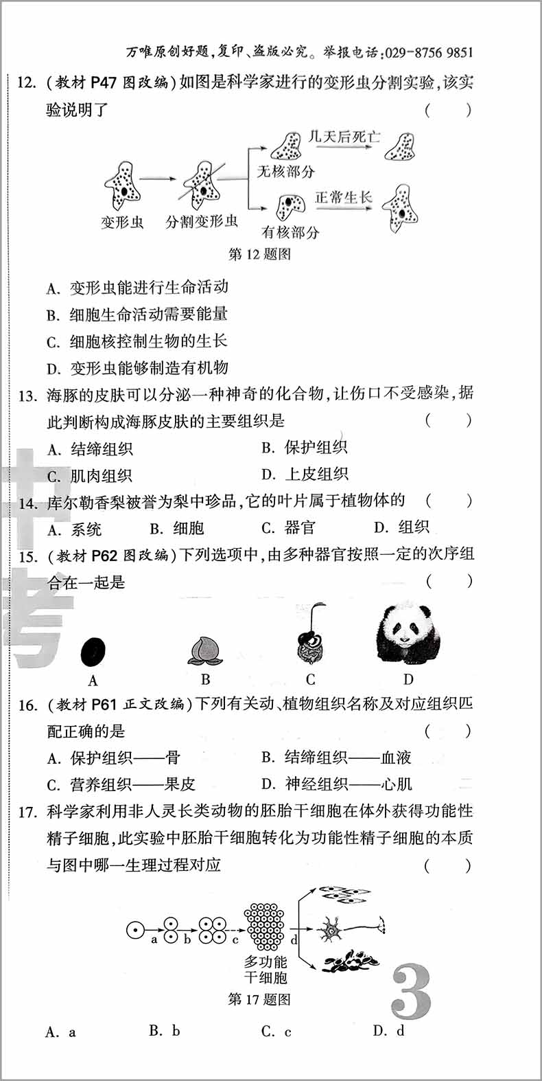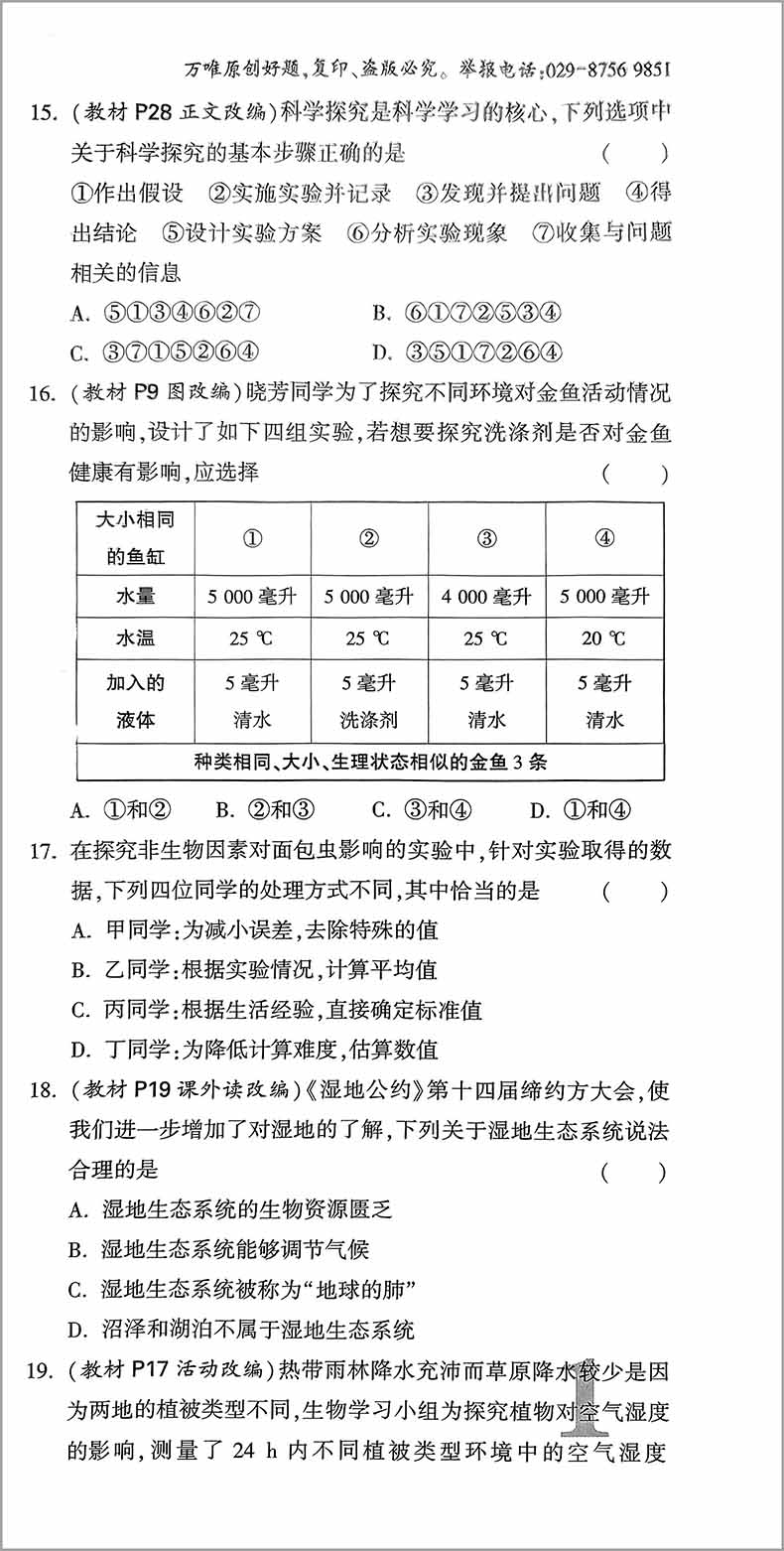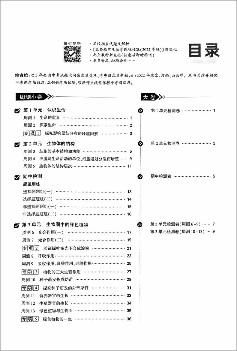 万唯中考100%原创试题大小卷七年级上生物学