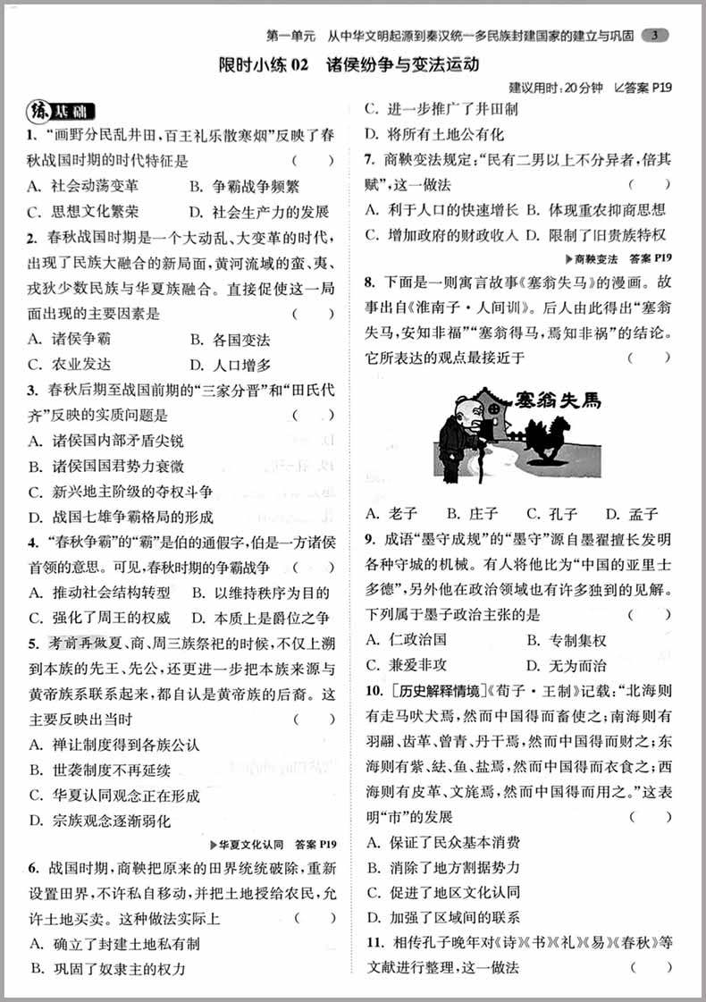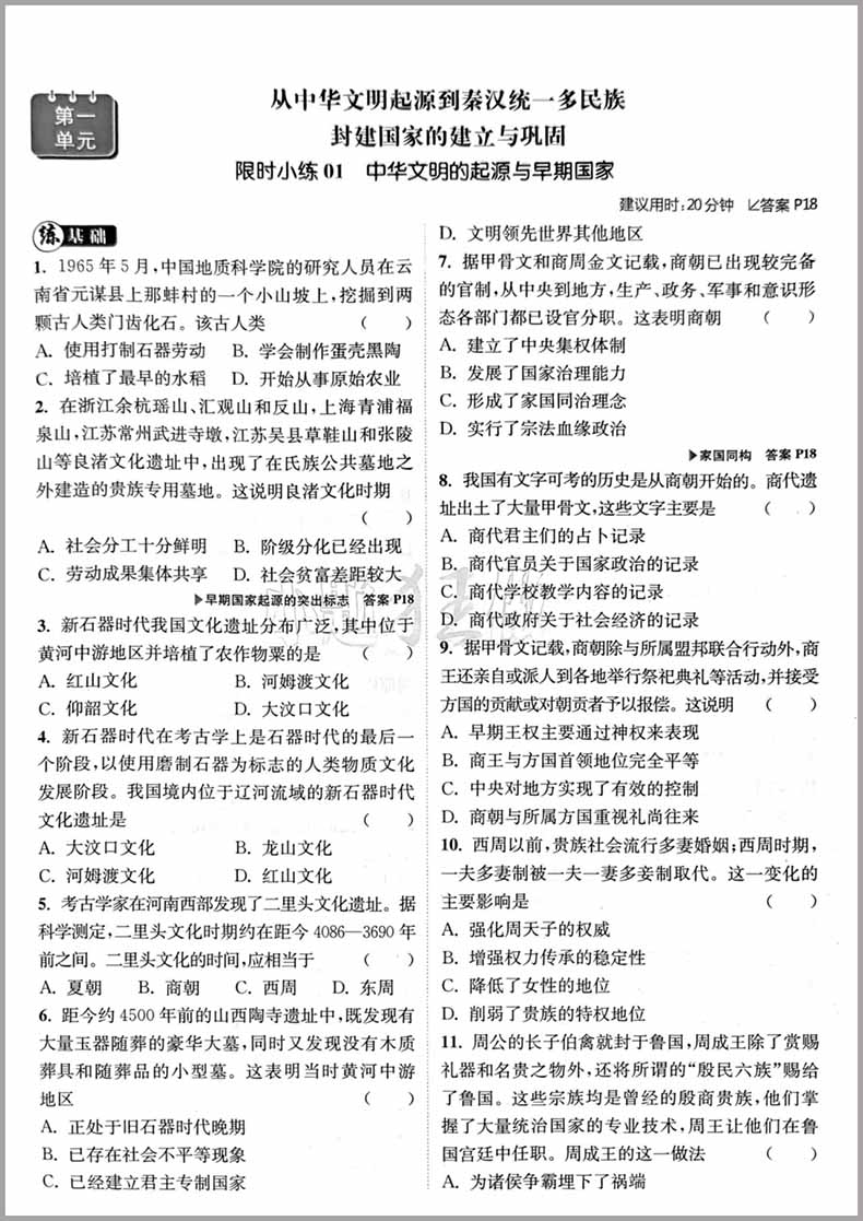 高中历史小题狂做必修中外历史纲要上基础过关
