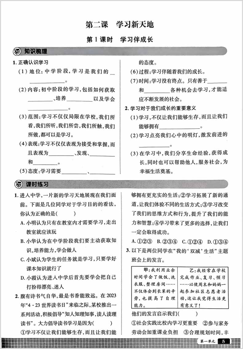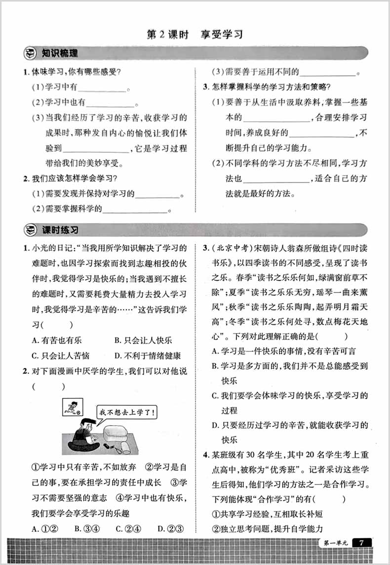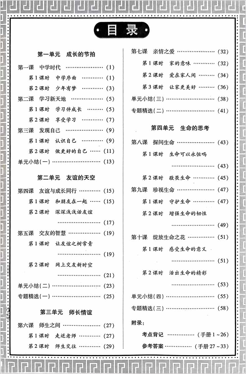 世纪英才中学奇迹课堂必刷考点七年级道德与法治上册