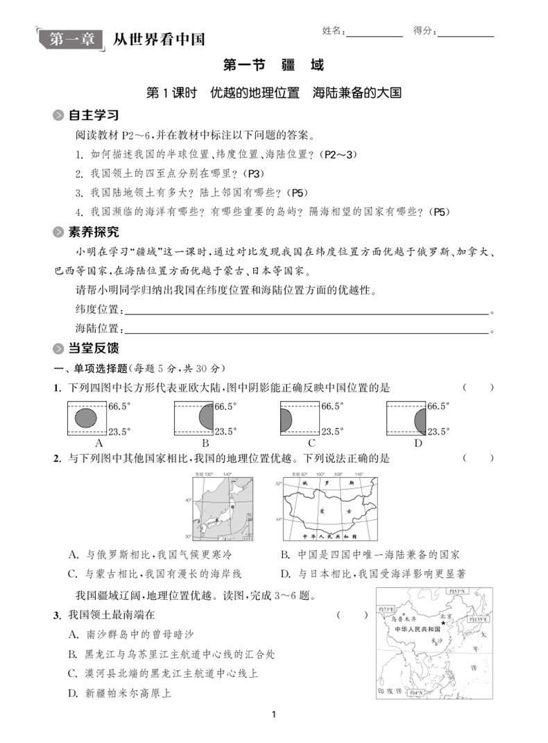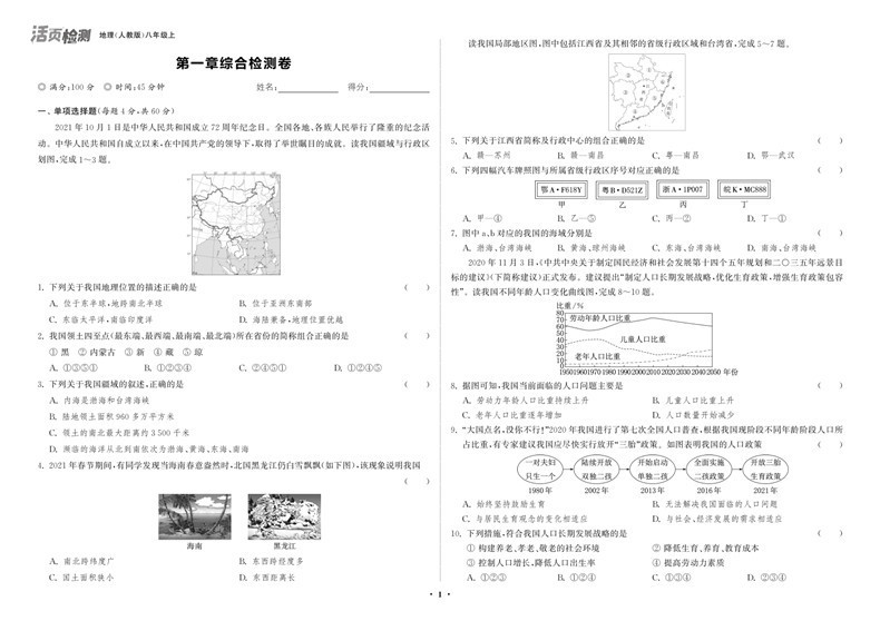 24活页检测八年地理上
