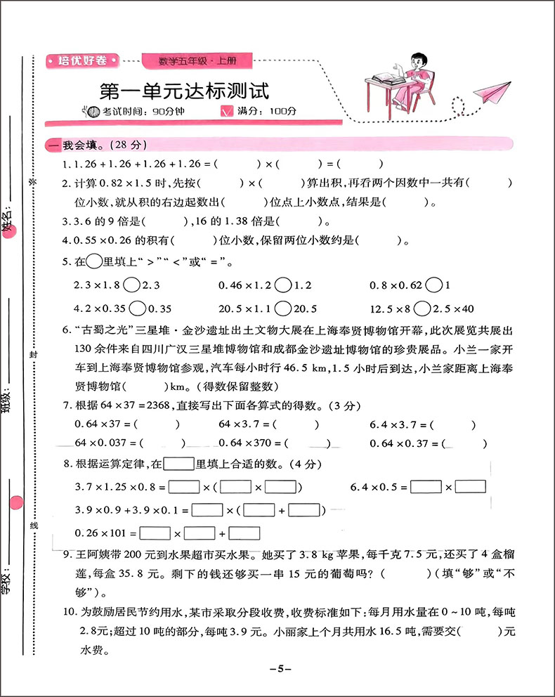 首页> 小学教辅> 五年级> 数学> 24培优好卷五年数学上