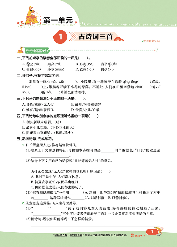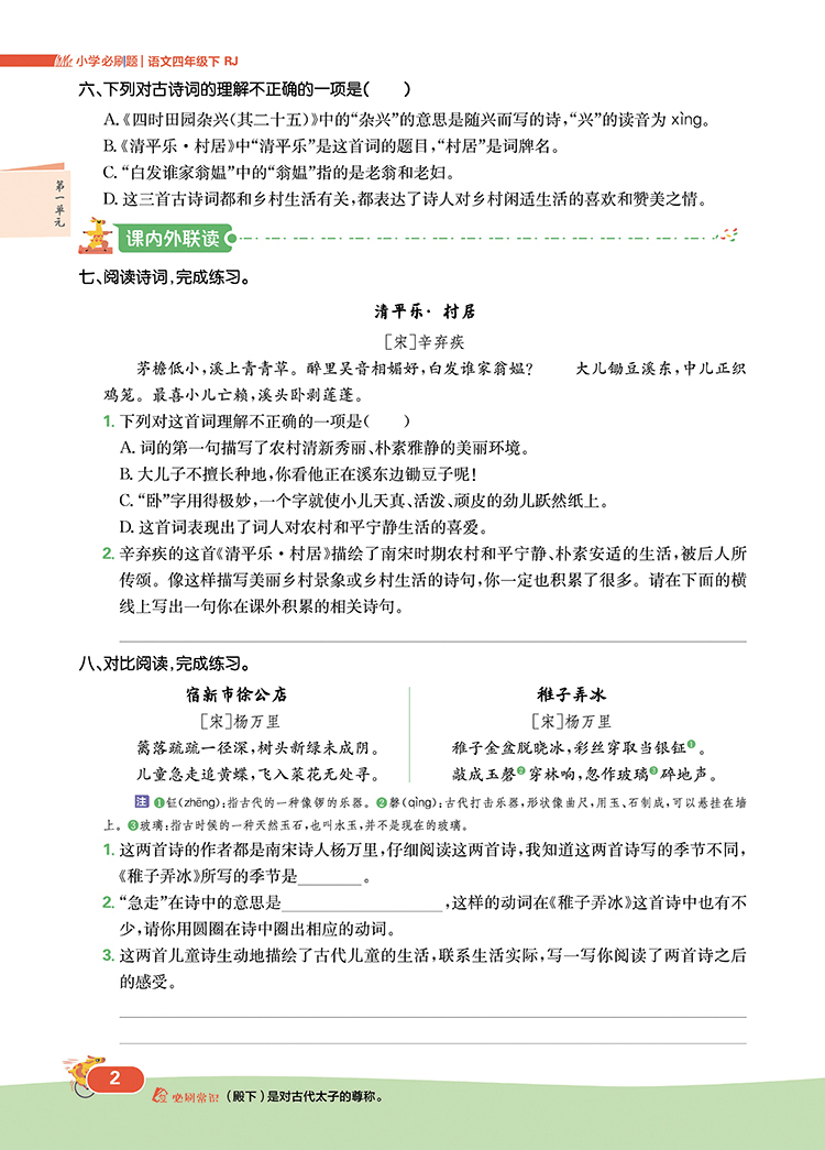 2022版 小学必刷题四年级语文下