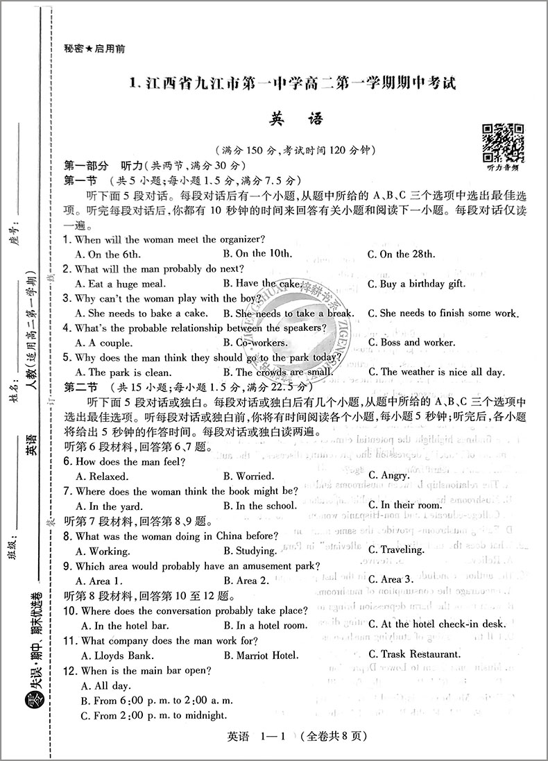 首页> 高中教辅> 高二年级> 英语> 24零失误期中期末优选卷高二英语上
