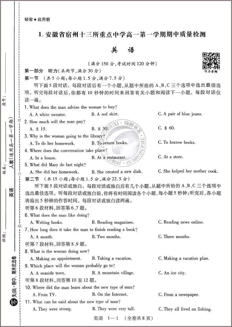 首页> 高中教辅> 高一年级> 英语> 24零失误期中期末优选卷高一英语上