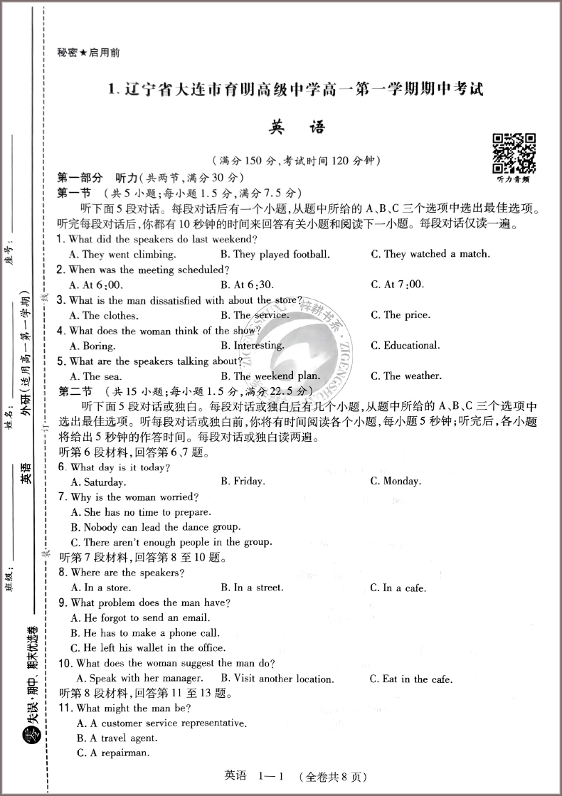 首页> 高中教辅> 高一年级> 英语> 24零失误期中期末优选卷高一英语上外研