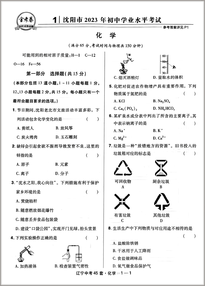 首页> 初中教辅> 中考> 化学> 24天星辽宁中考45套题化学