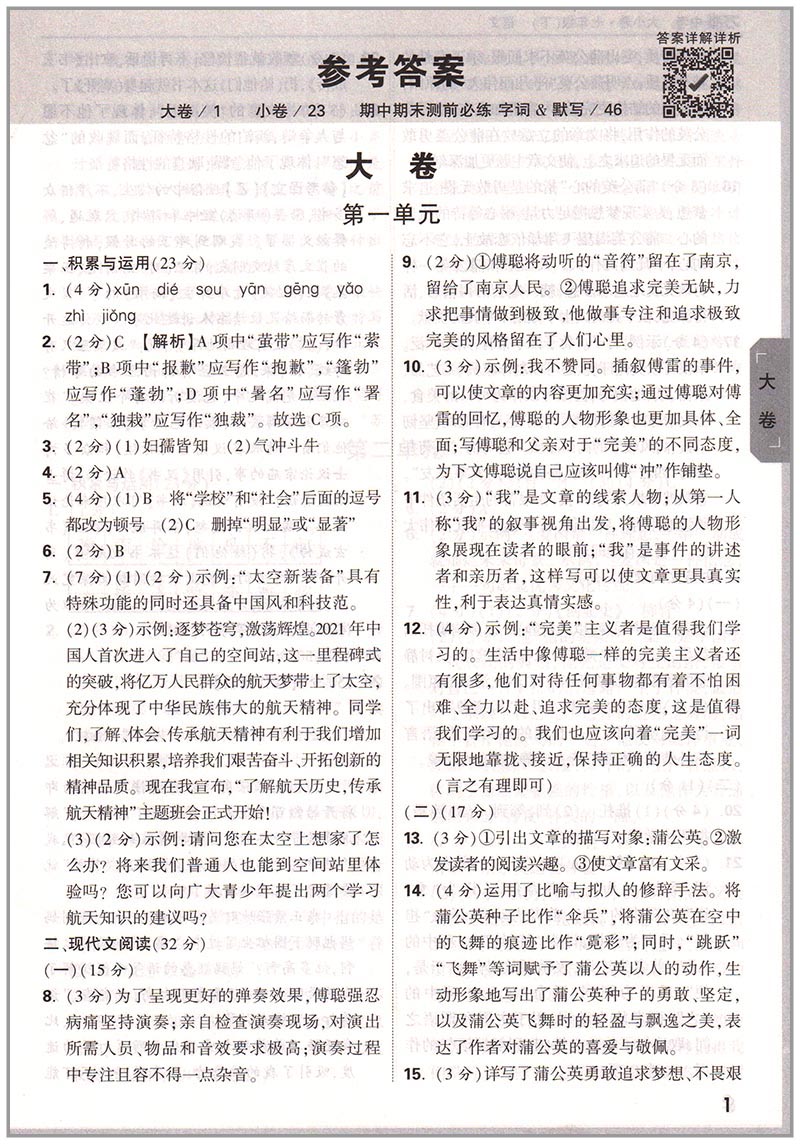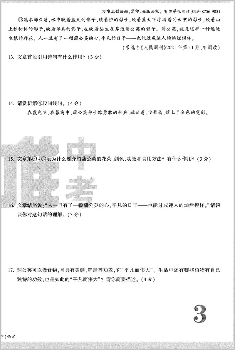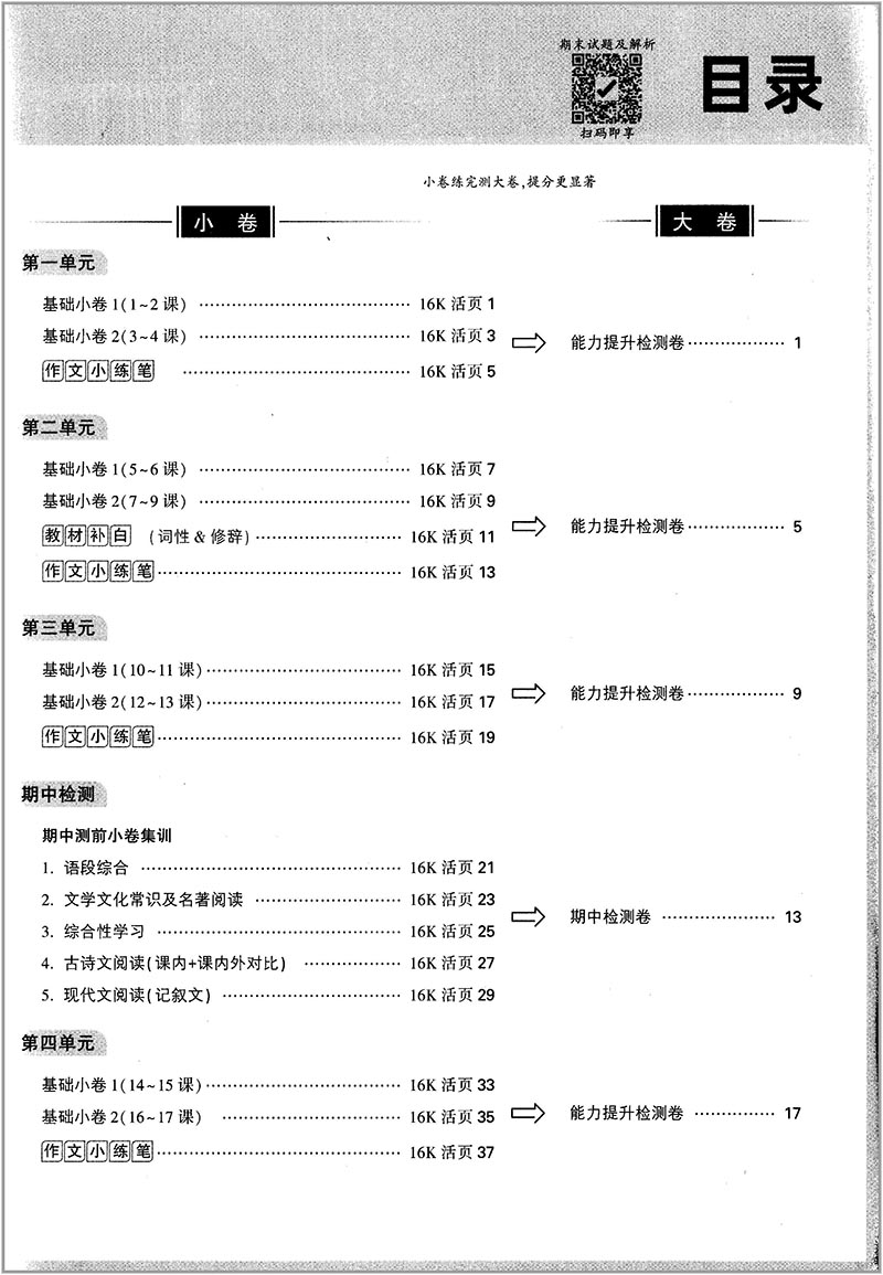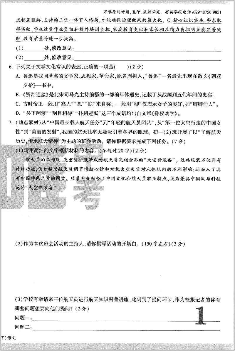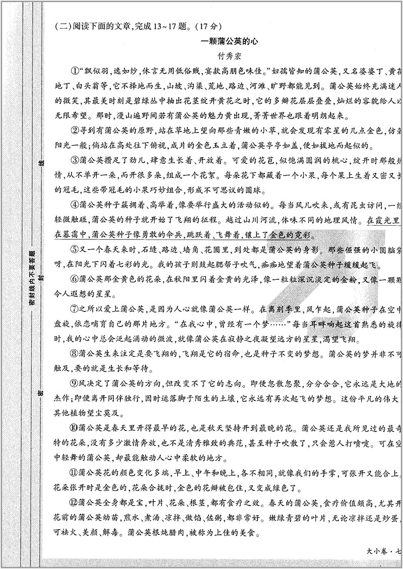 万唯大小卷 七年级语文下