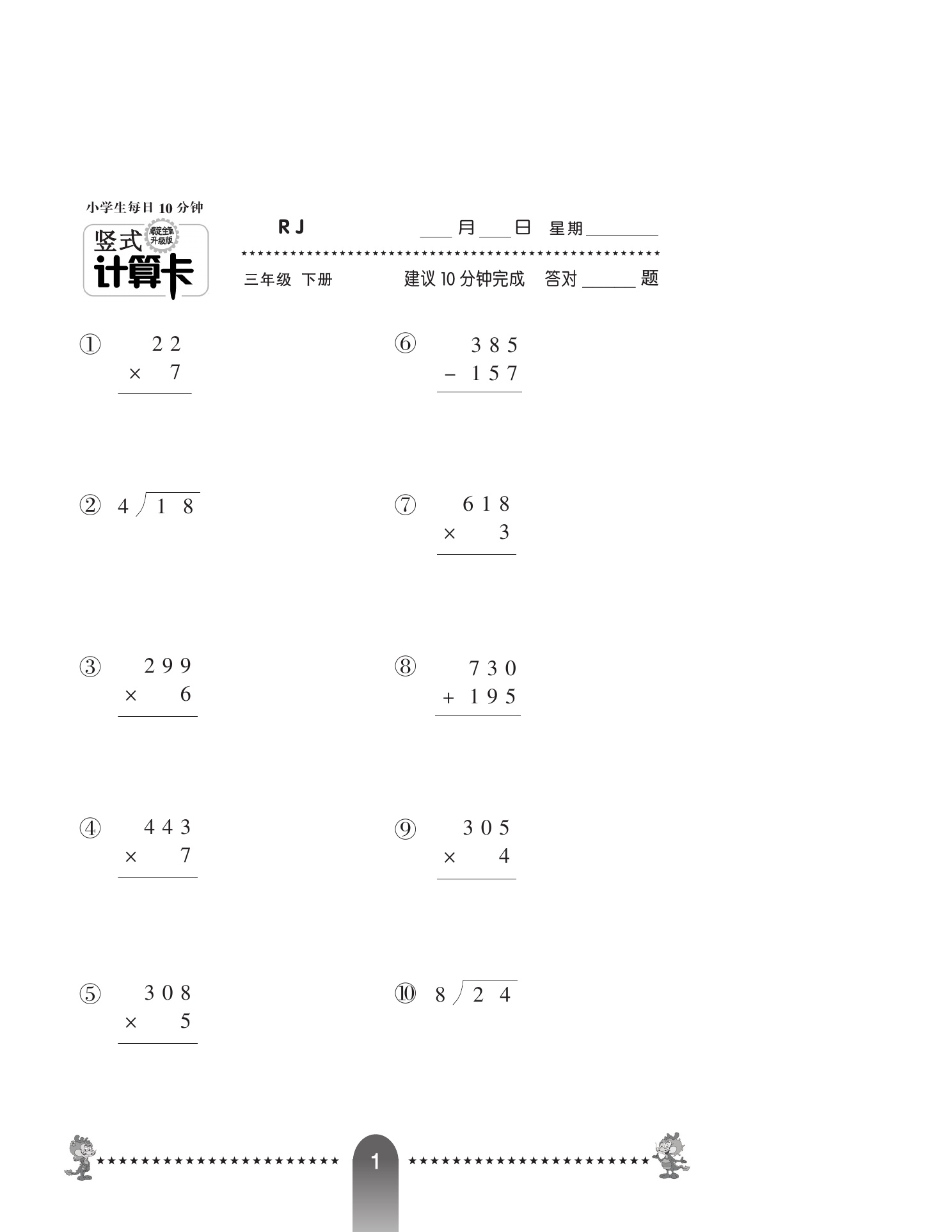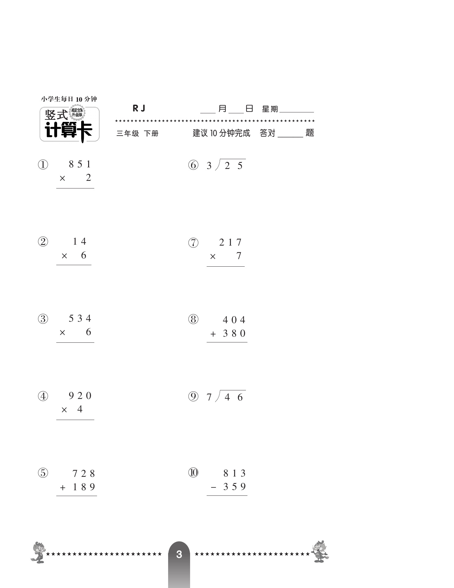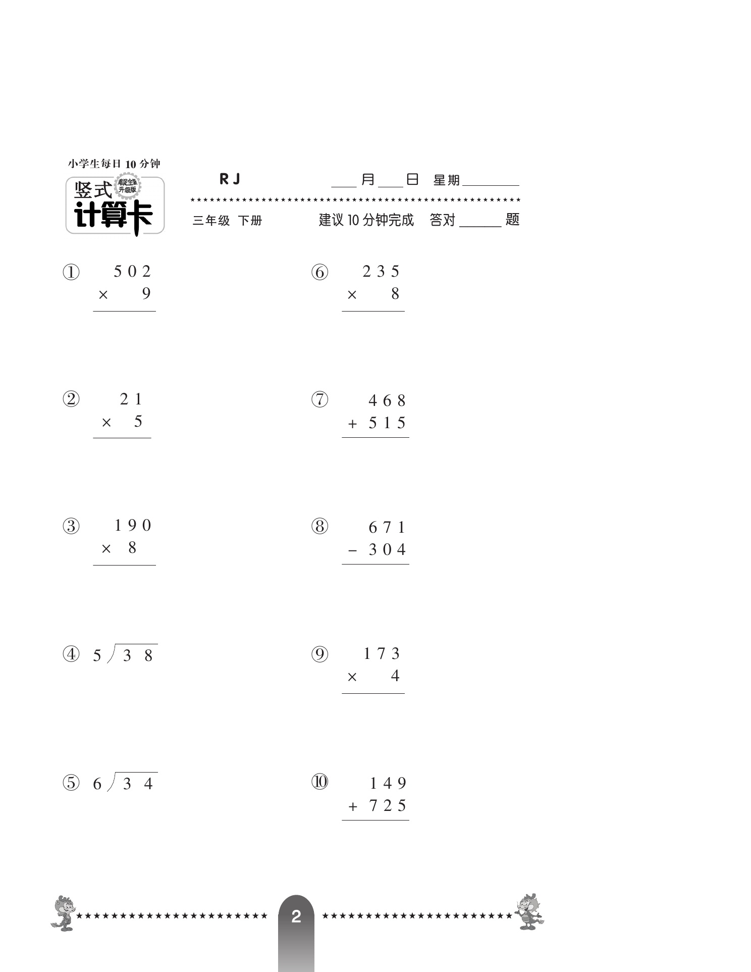 2022版 小学生每日十分钟海淀竖式计算卡二年级下册