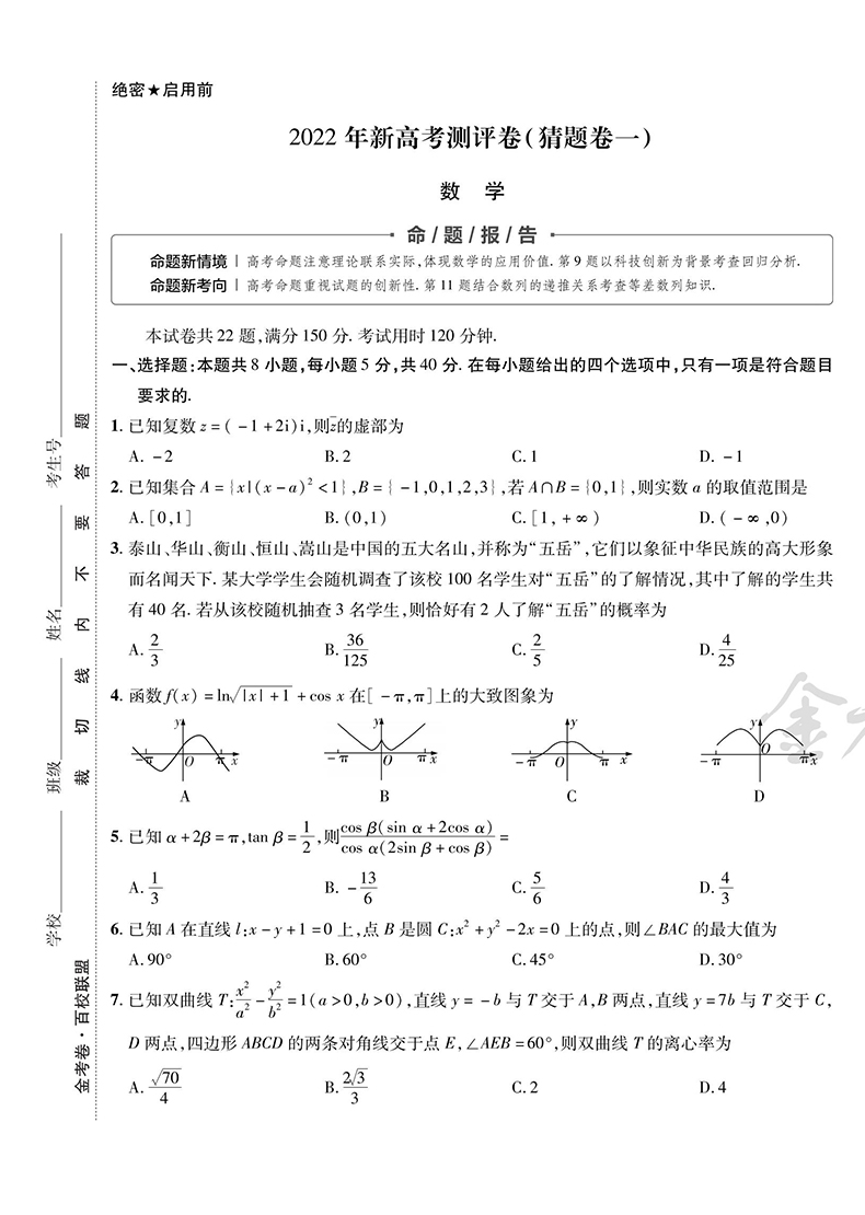 首页> 高中教辅> 高三年级> 数学> 2022金考卷新高考测评卷猜题卷数学