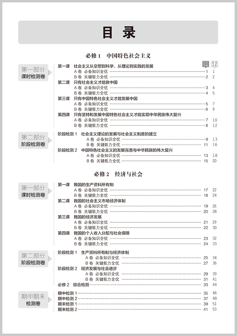 16套课时检测卷+9套阶段检测卷+4套期中期末卷