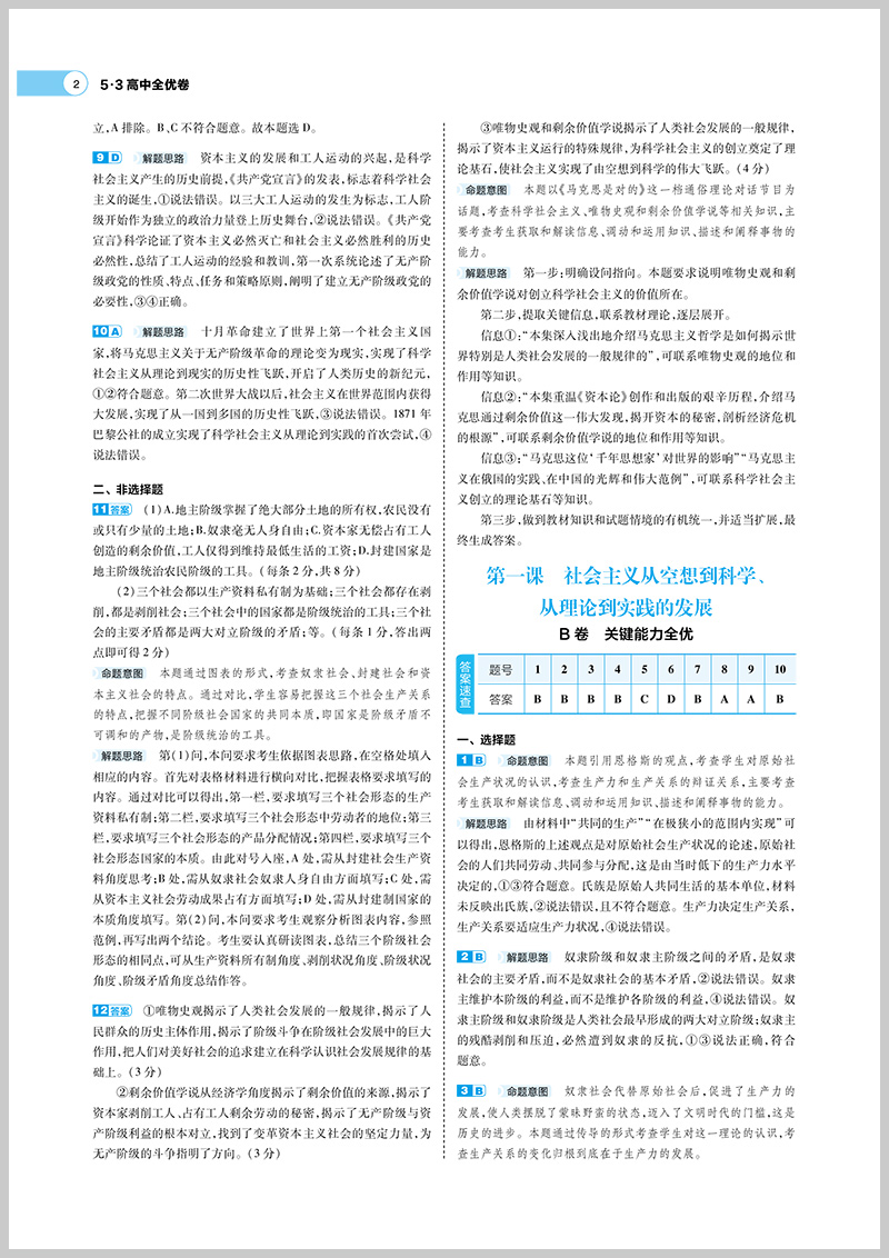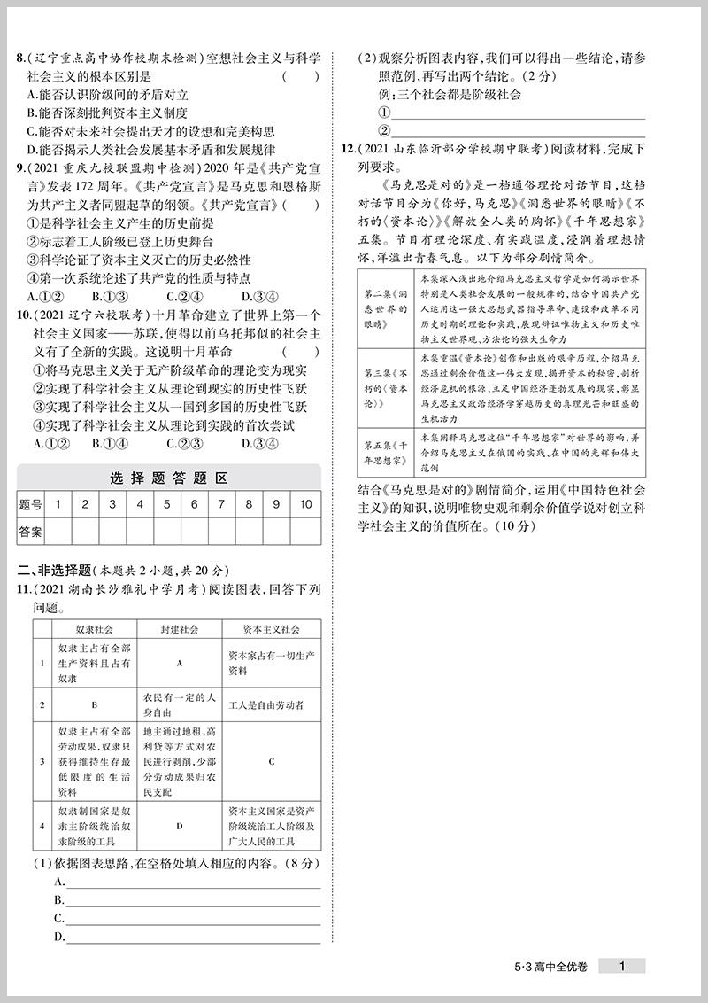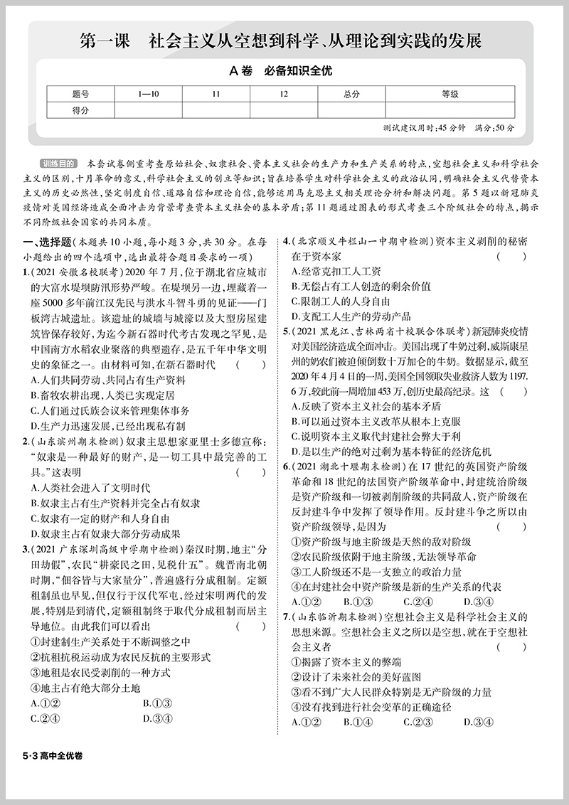 5.3全优卷高中政治第1、2合订本 适用高一上