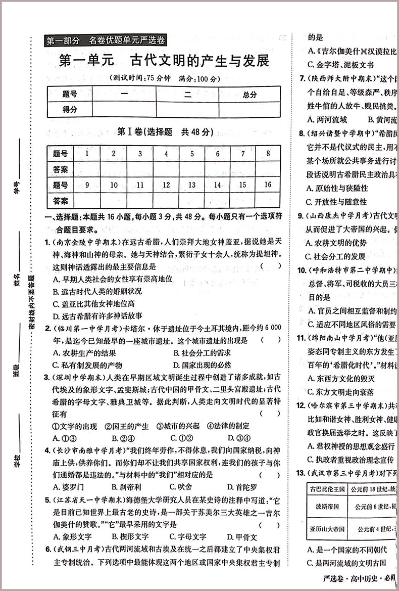 首页> 高中教辅> 高一年级> 历史> 王后雄百强严选卷高中历史必修下 中外历史纲要