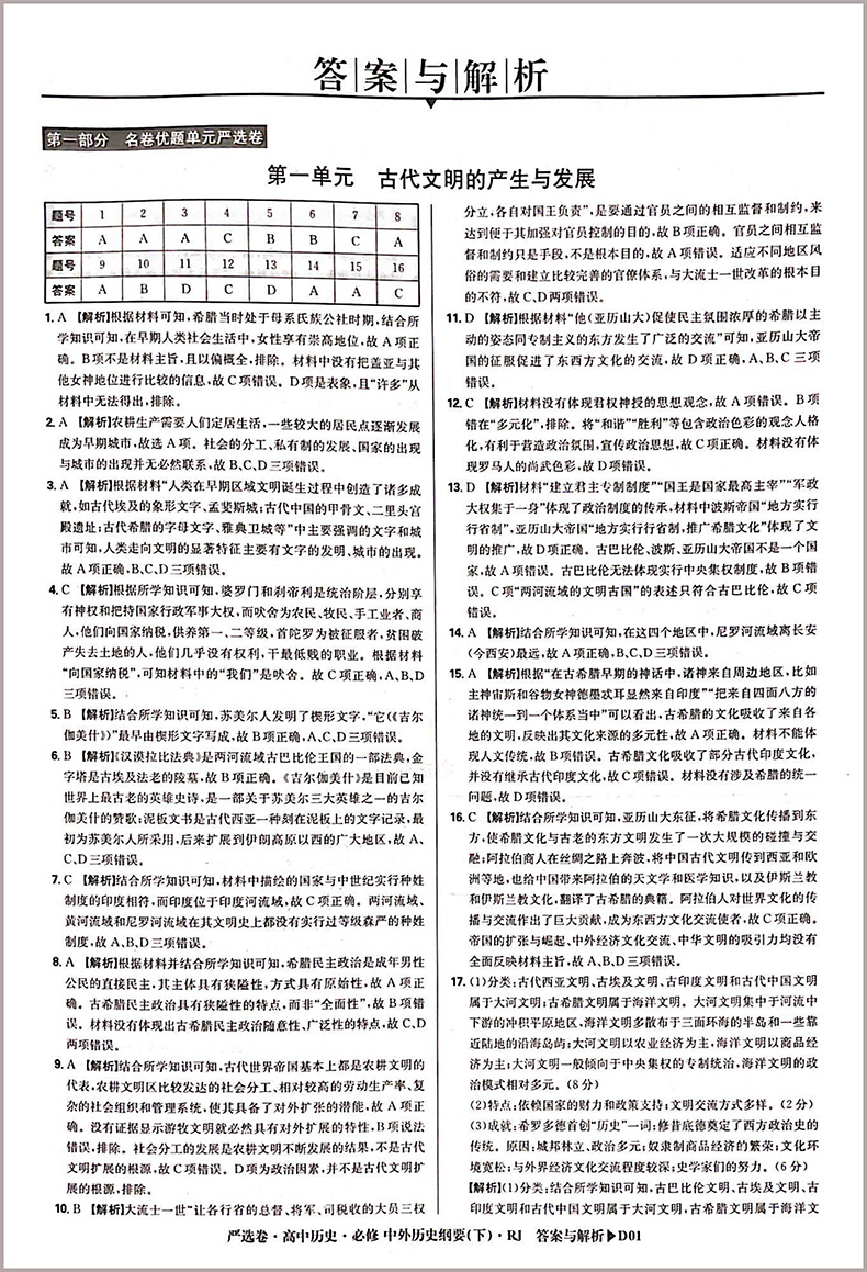 王后雄百强严选卷高中历史必修下 中外历史纲要