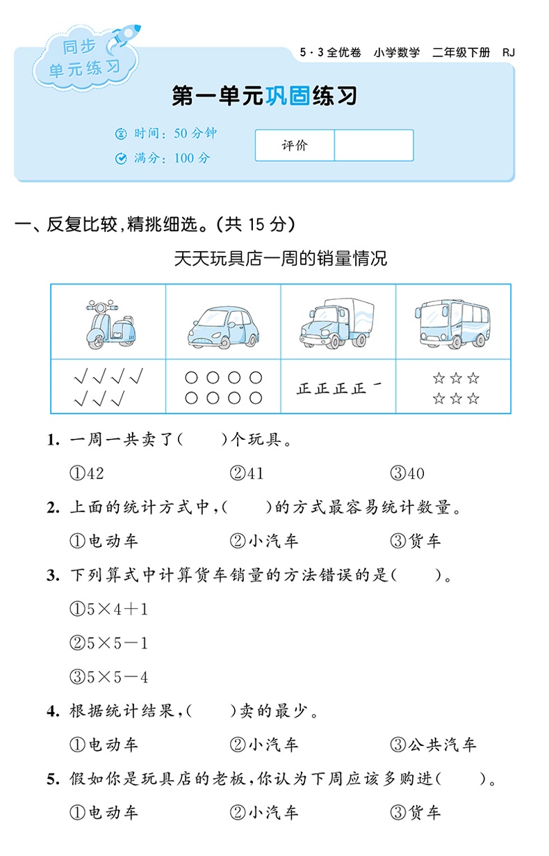 首页> 小学教辅> 二年级> 数学> 2022春 5.3全优卷二年数学下册