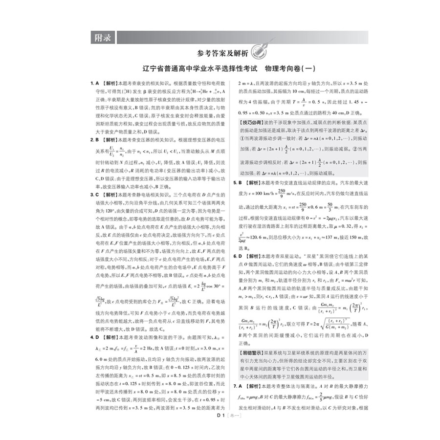 2022版 高考必刷卷考向卷命题聚焦物理(辽宁专用)