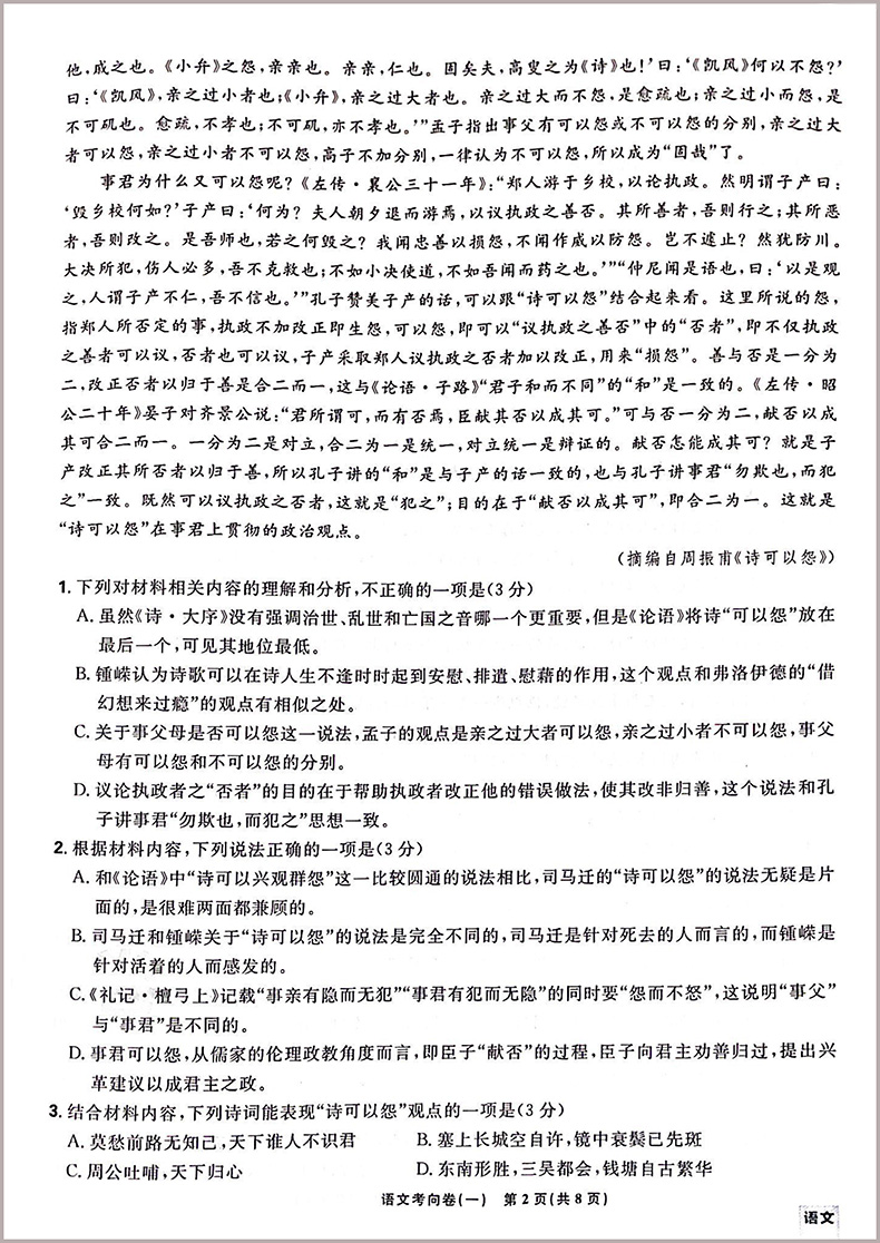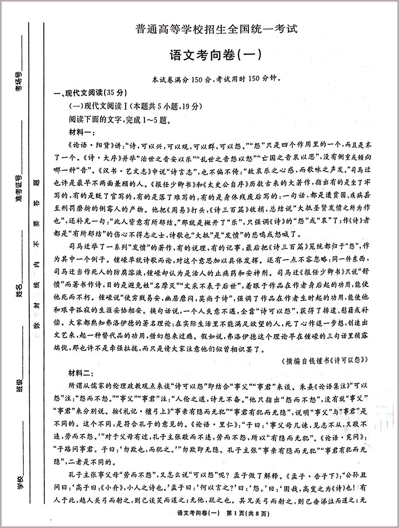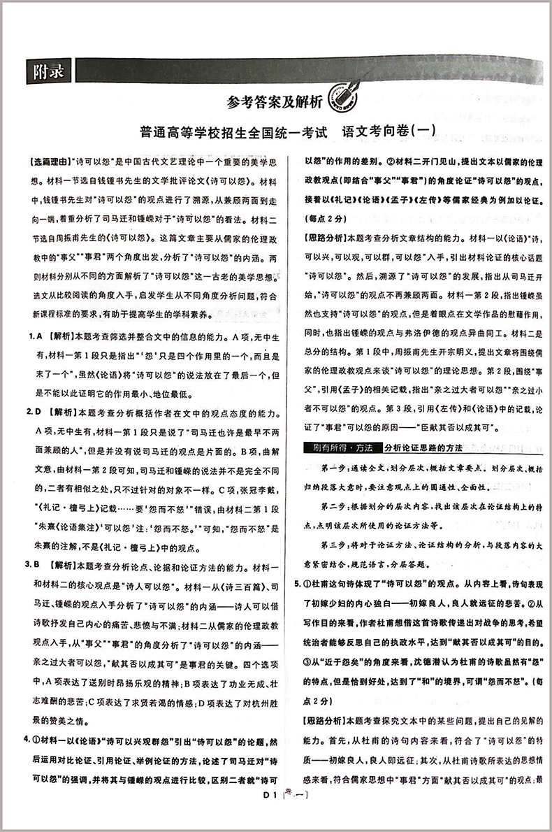 2022版 高考必刷卷考向卷命题聚焦语文(新高考专用)