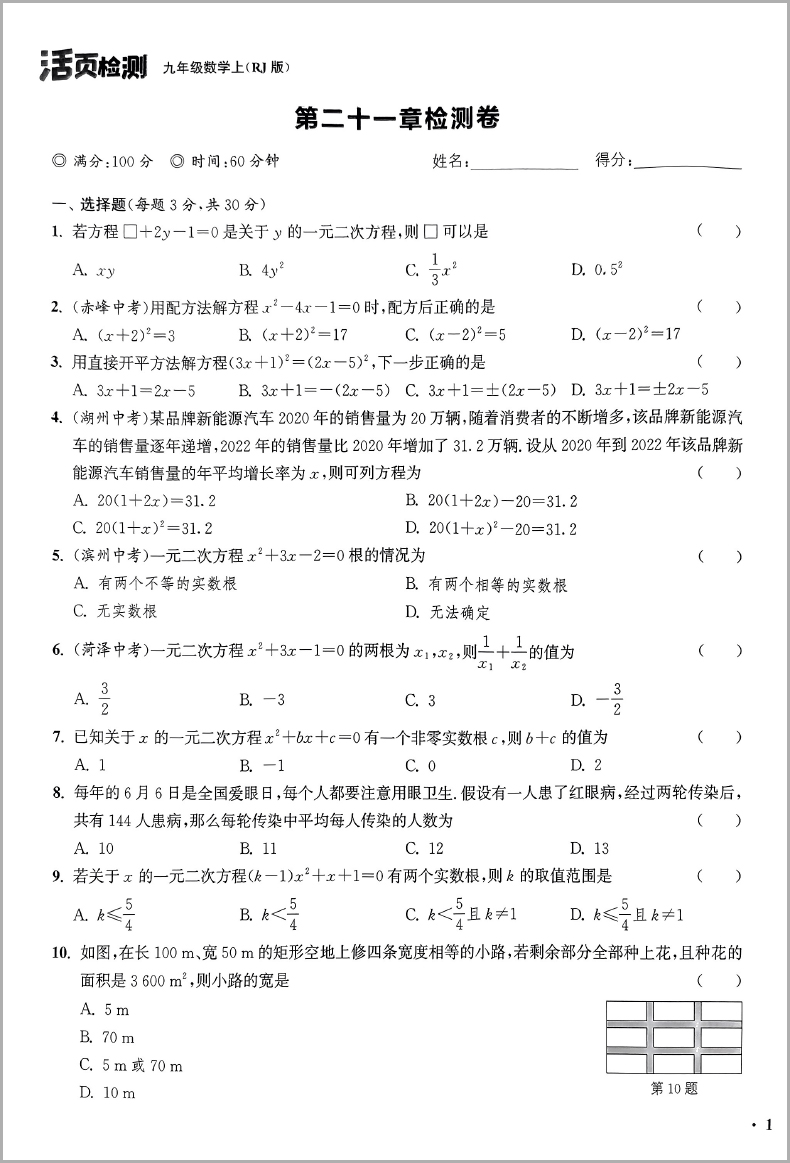 首页> 初中教辅> 九年级> 数学> 25活页检测九年数学上