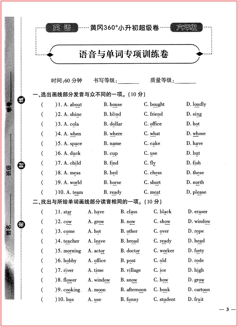 黄冈360°小升初超级卷 英语