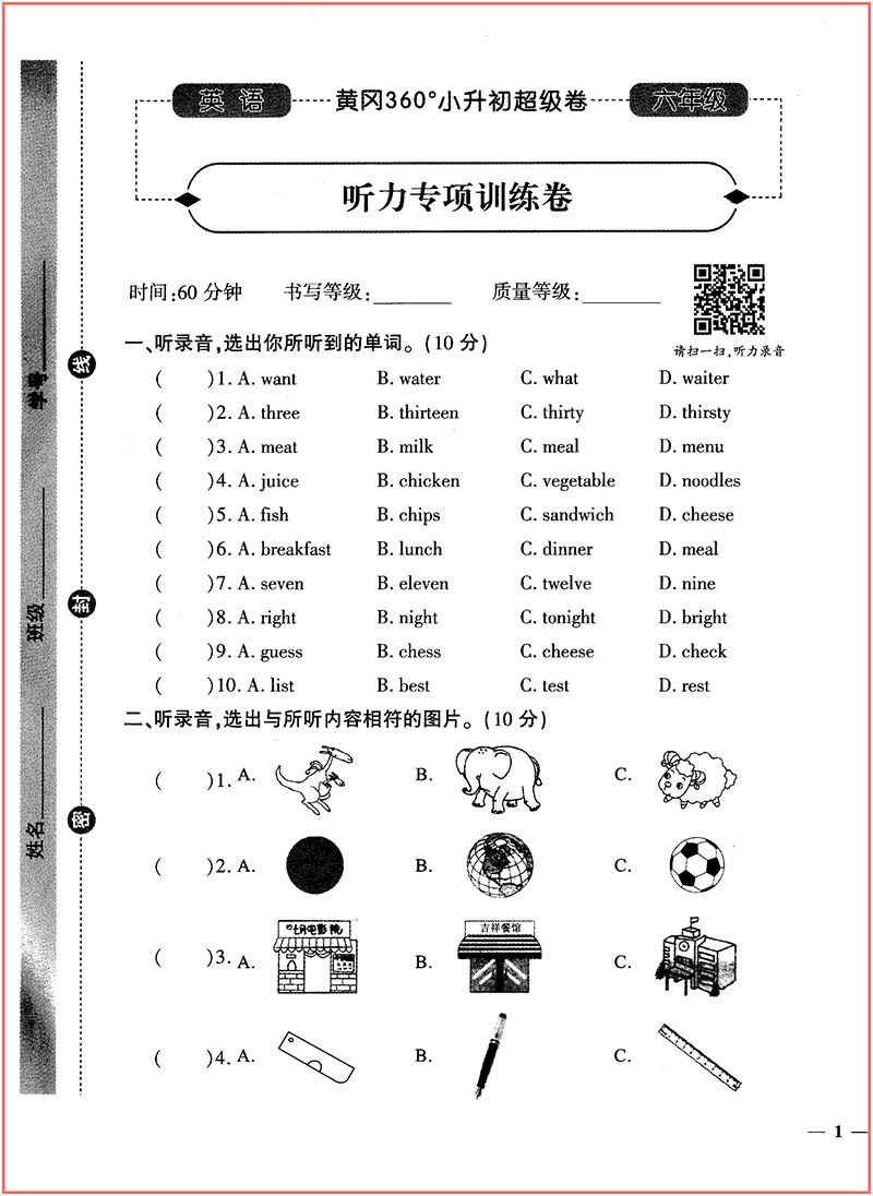 首页> 小学教辅> 六年级> 英语> 黄冈360°小升初超级卷 英语