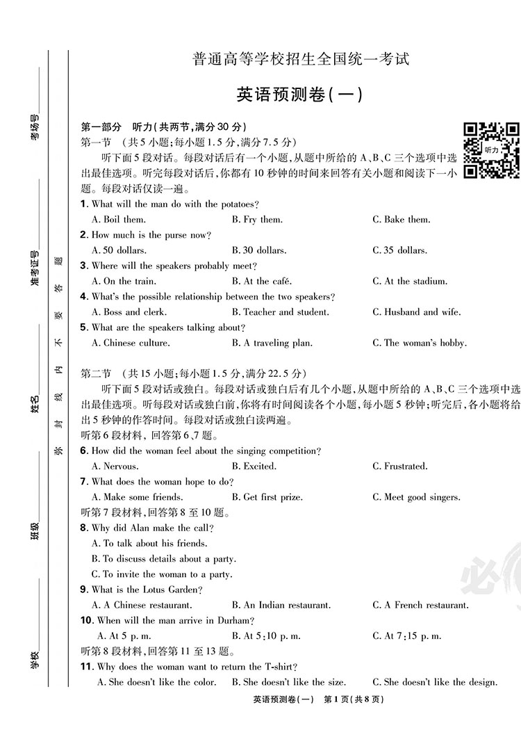 首页> 高中教辅> 高三年级> 英语> 2022版 高考必刷卷预测卷洞察风向英语 新高考专用