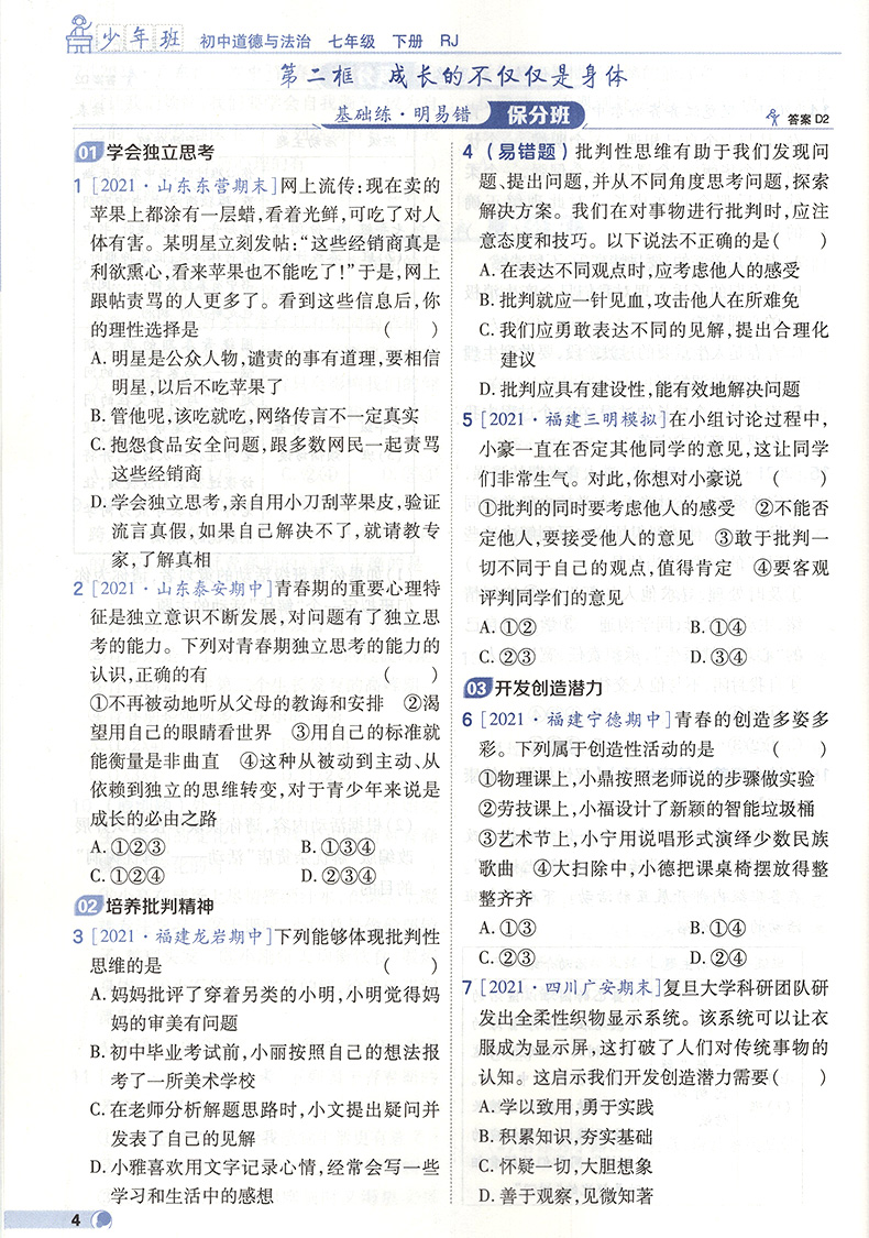 首页> 初中教辅> 七年级> 政治> 2022版 少年班初中政治七年级下册