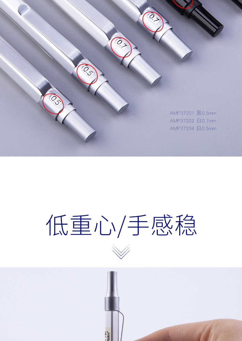 晨光本味金属自动铅笔低重心按动自动笔0.5