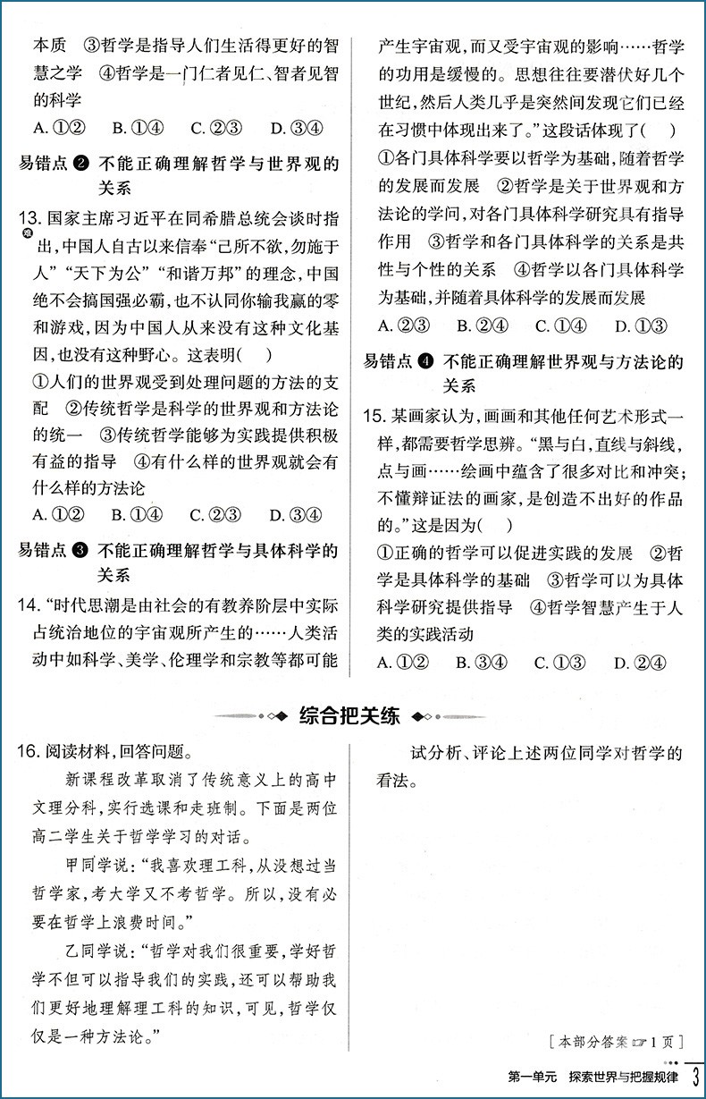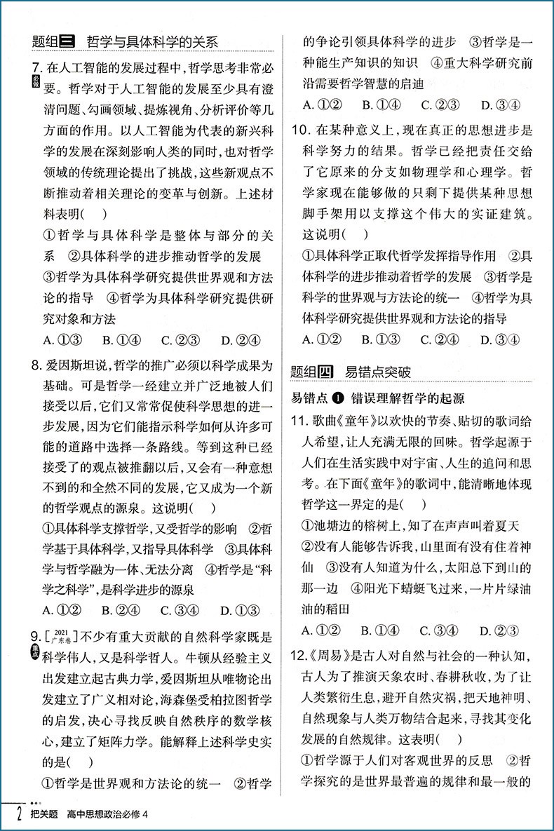 2023版 把关题高中政治必修4 哲学与文化