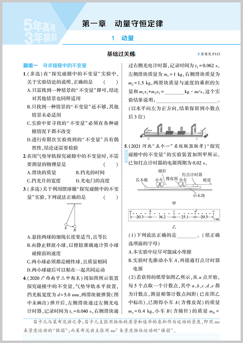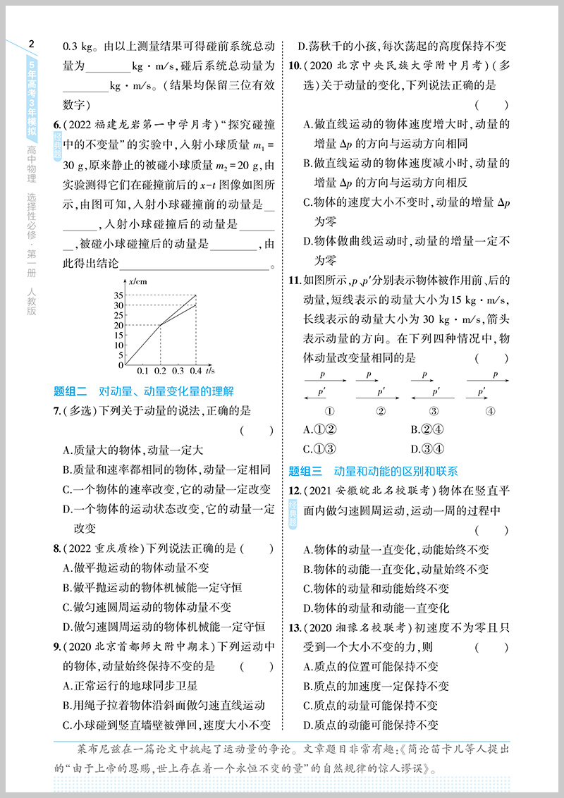 2023版 5年高考3年模拟高中物理选择性必修第一册