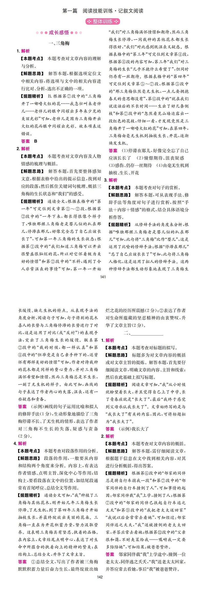 一本初中语文阅读训练五合一七年