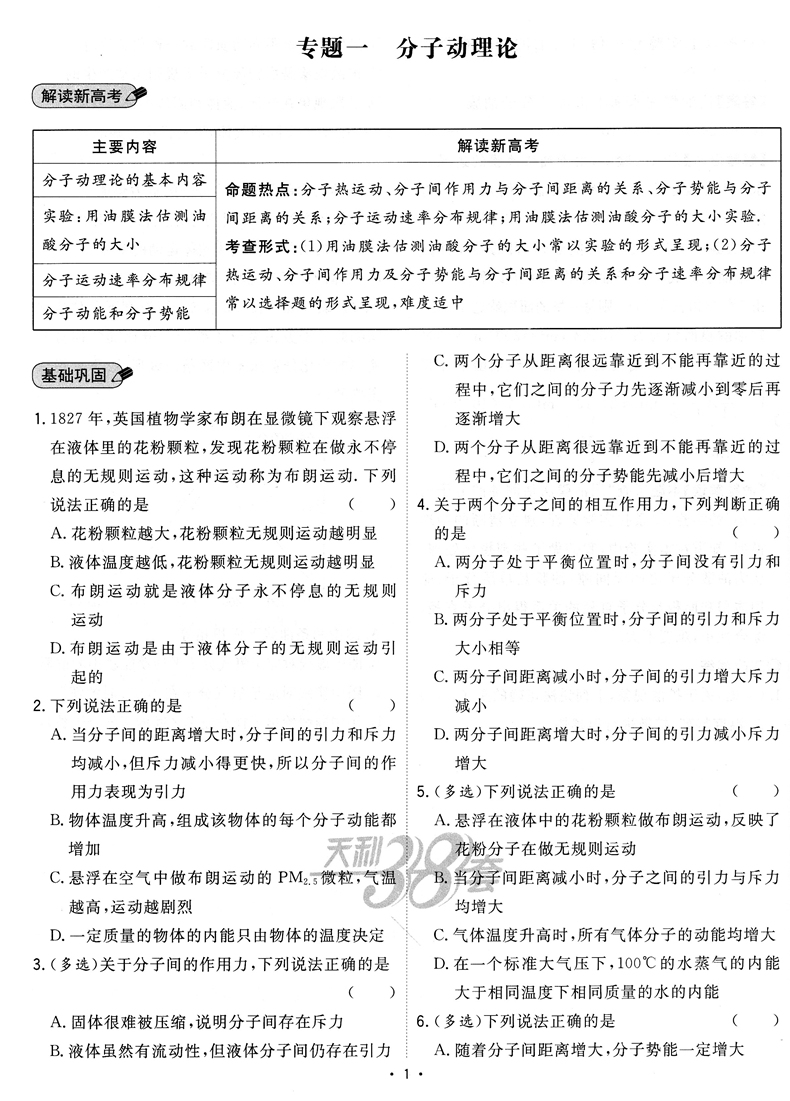 首页> 高中教辅> 高二年级> 物理> 2023版 天利38套对接新高考单元专题测试卷选择性必修第三册