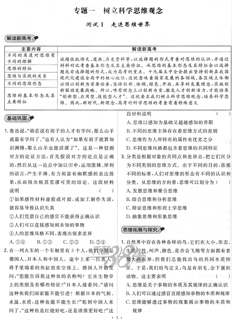 2023版 天利38套对接新高考单元专题测试卷政治选择性必修3